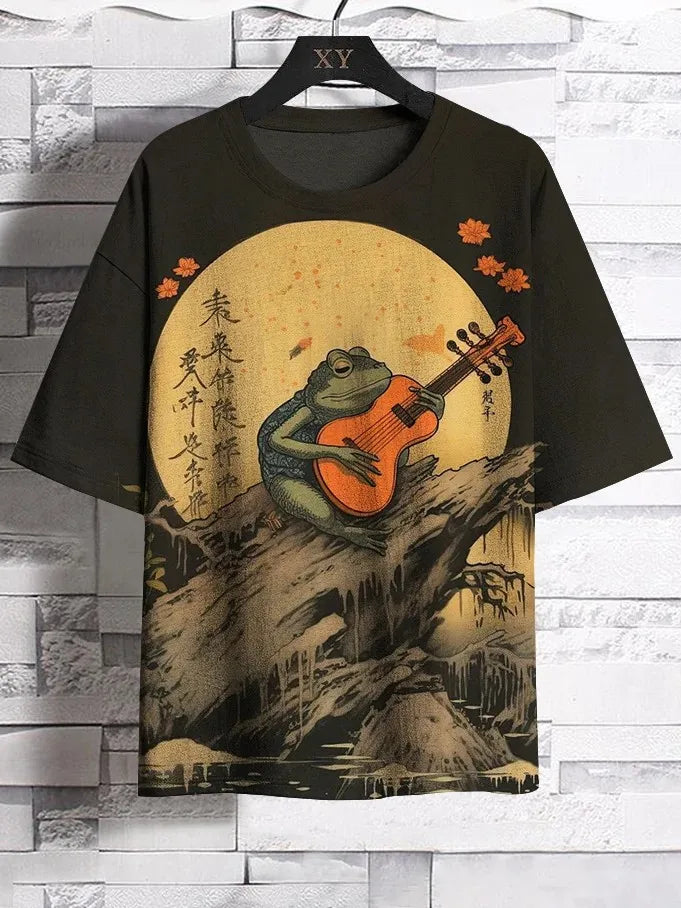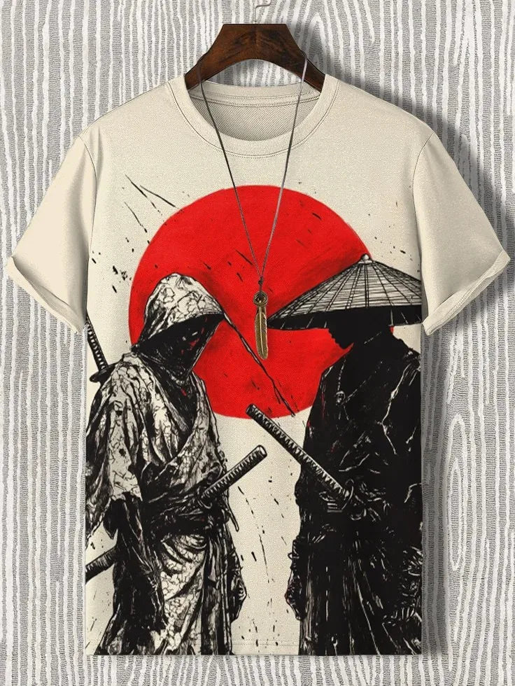3D Japanese Ukiyo-e Graphic Tee – Casual O-Neck Shirt for Men