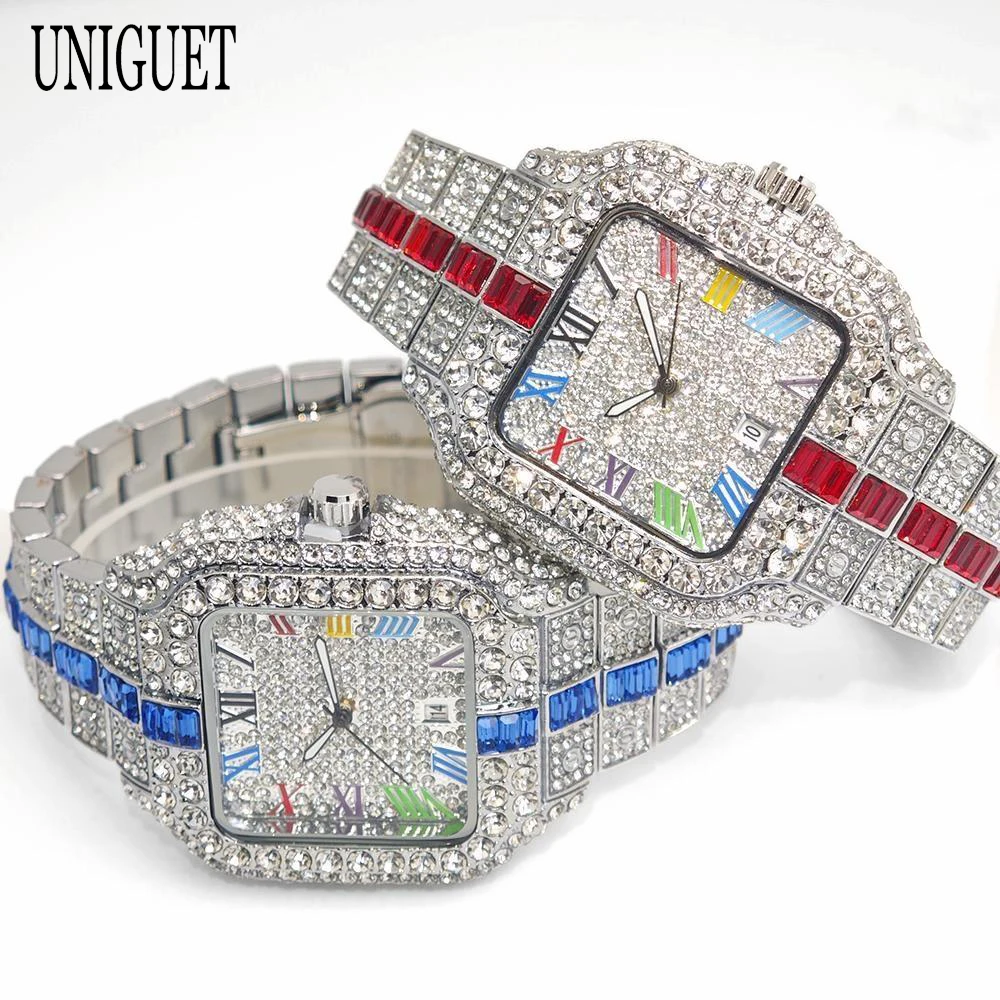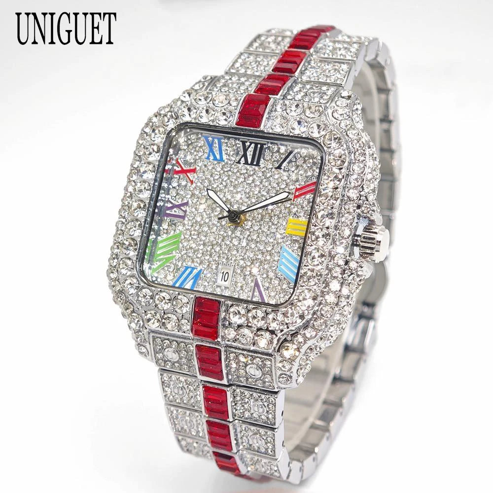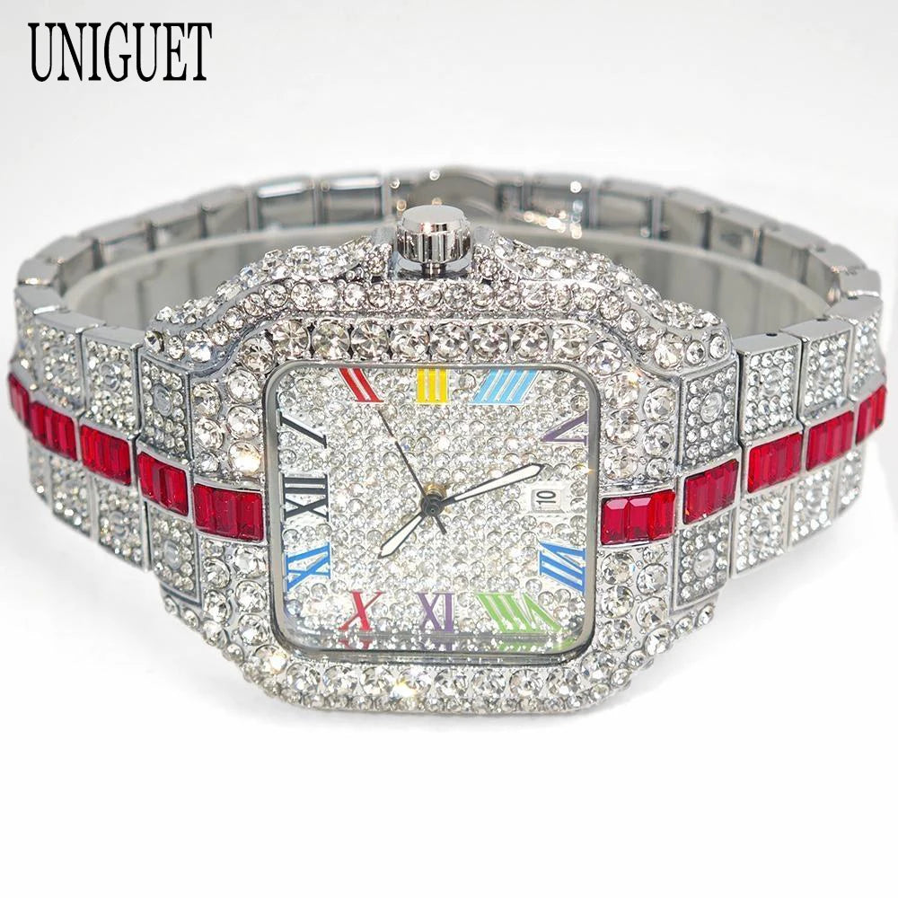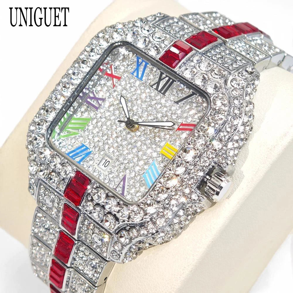 2025 Men's Luxury Watch – Rainbow Dial, Diamond Bling, Waterproof, Hip Hop Style