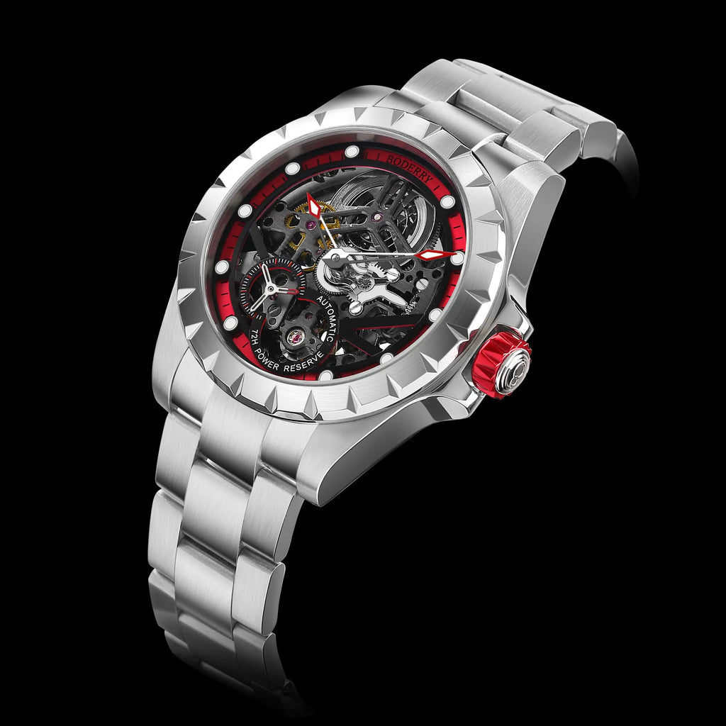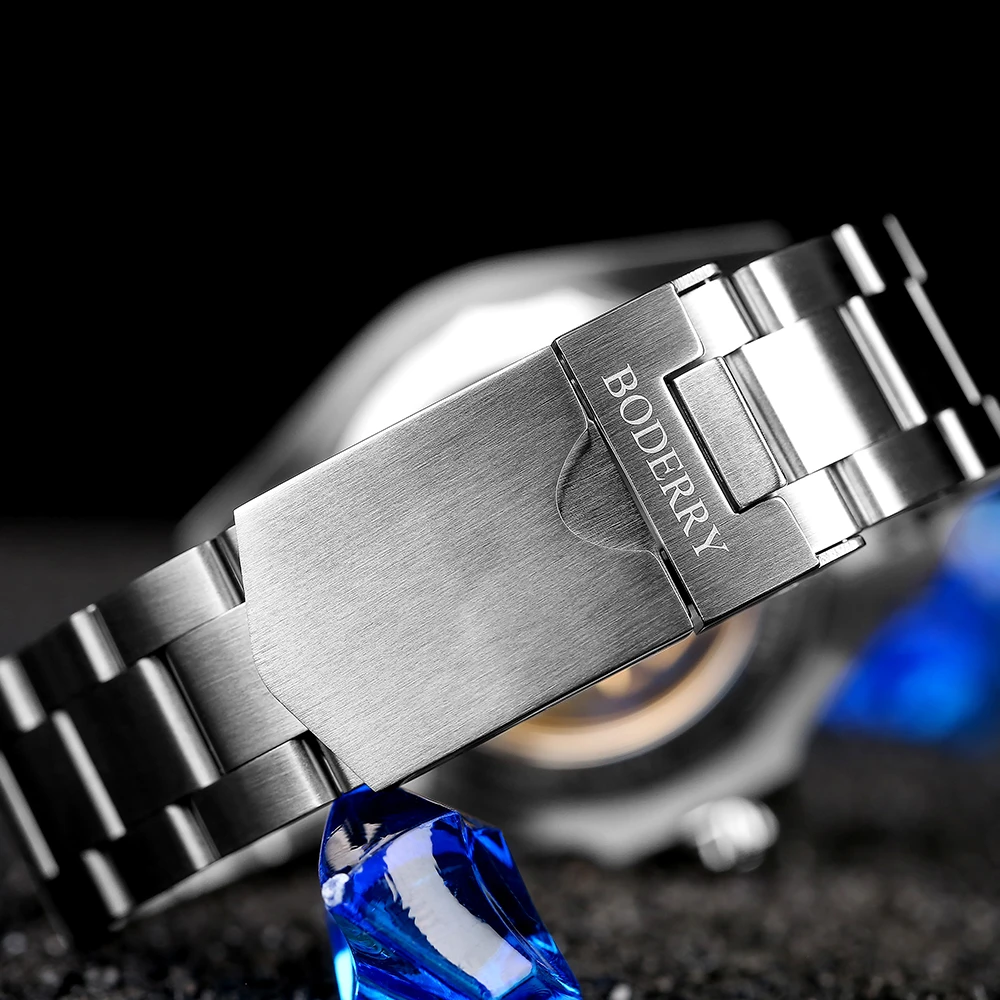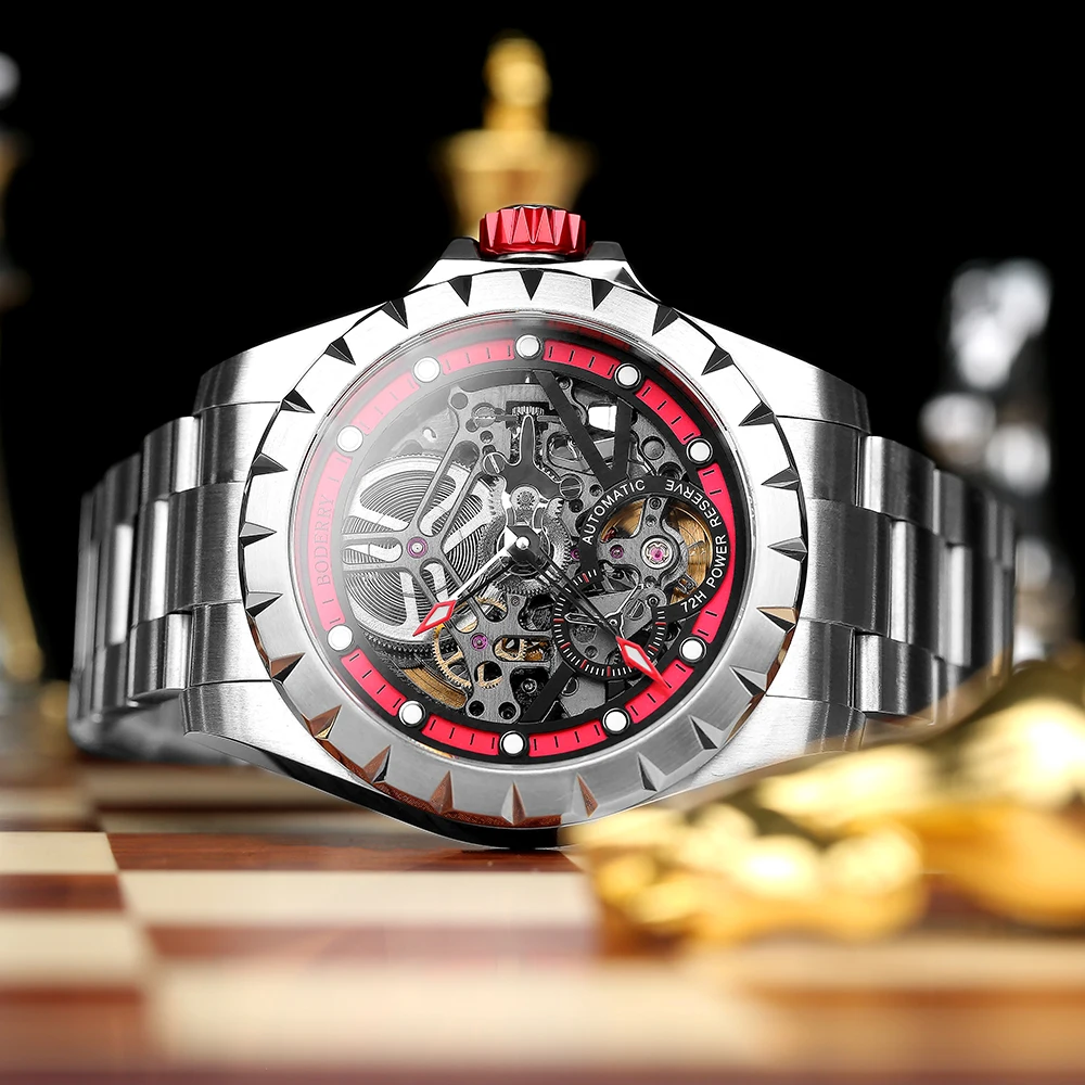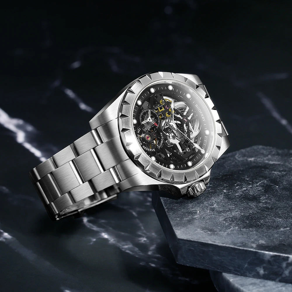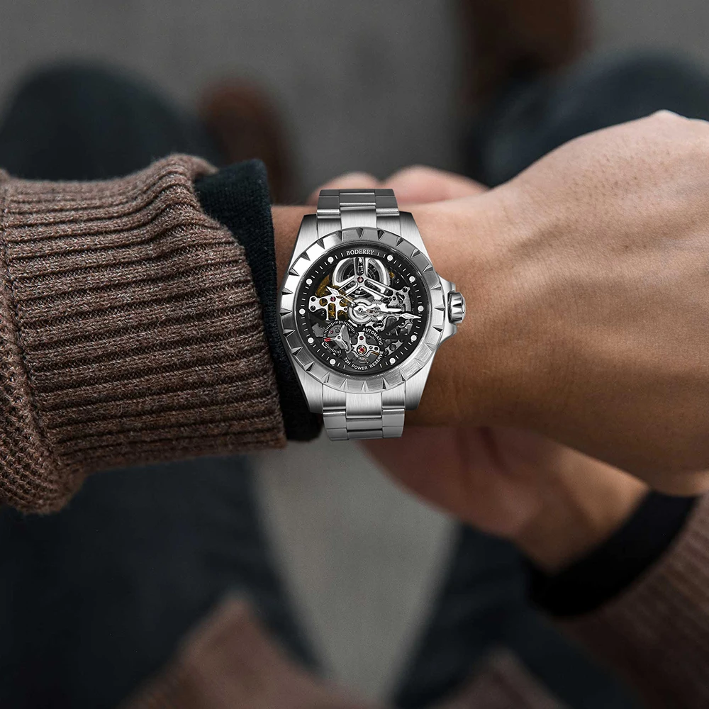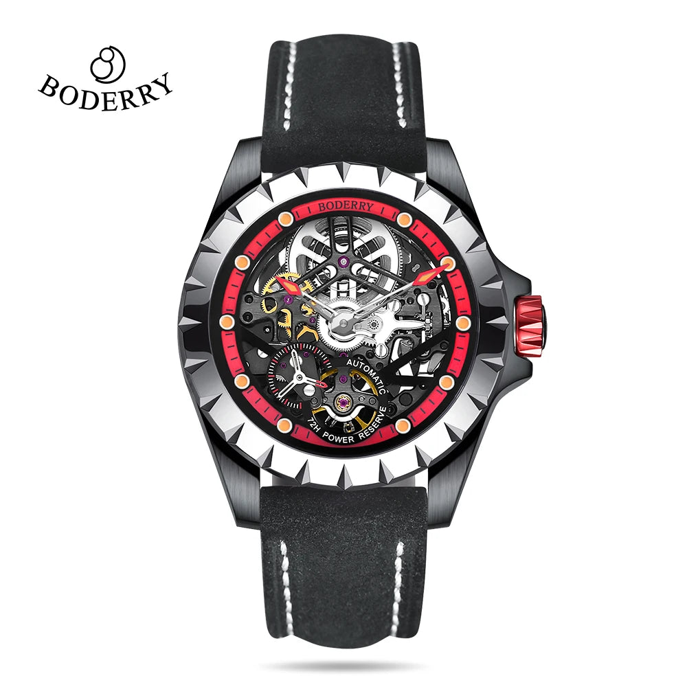 Boderry Windmill Men's Skeleton Watch – Automatic Mechanical Waterproof Sports Wristwatch, Stylish Fashion Timepiece