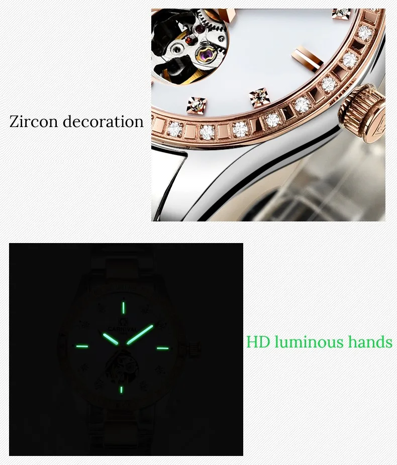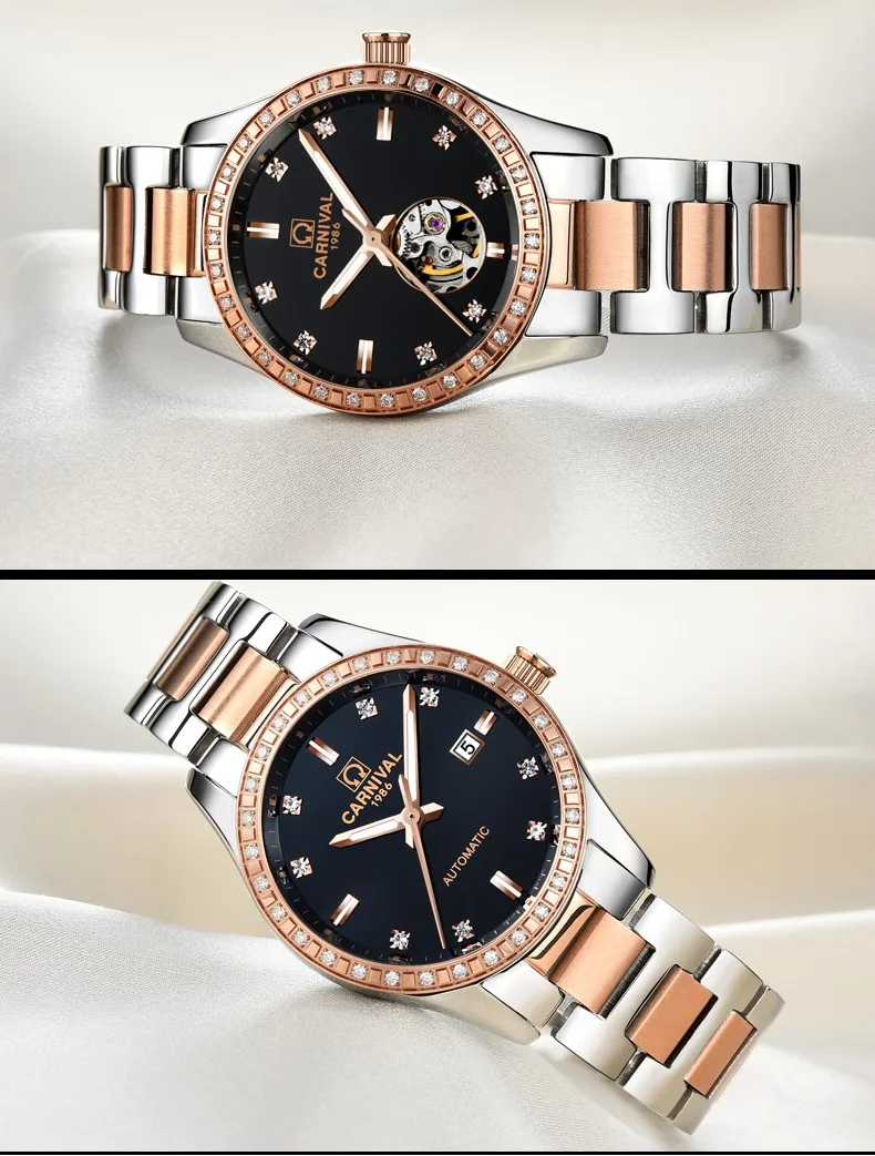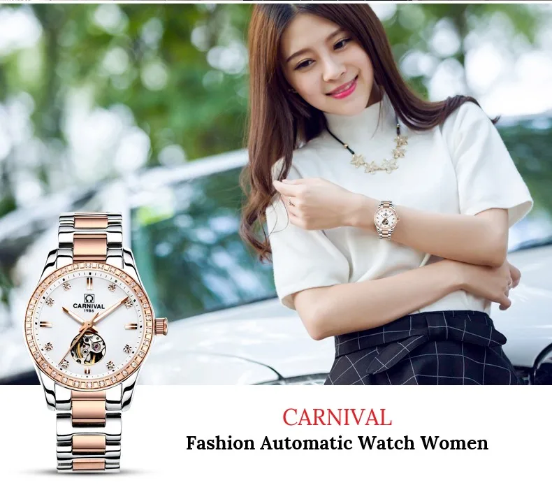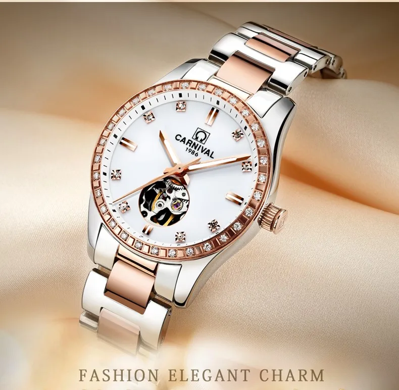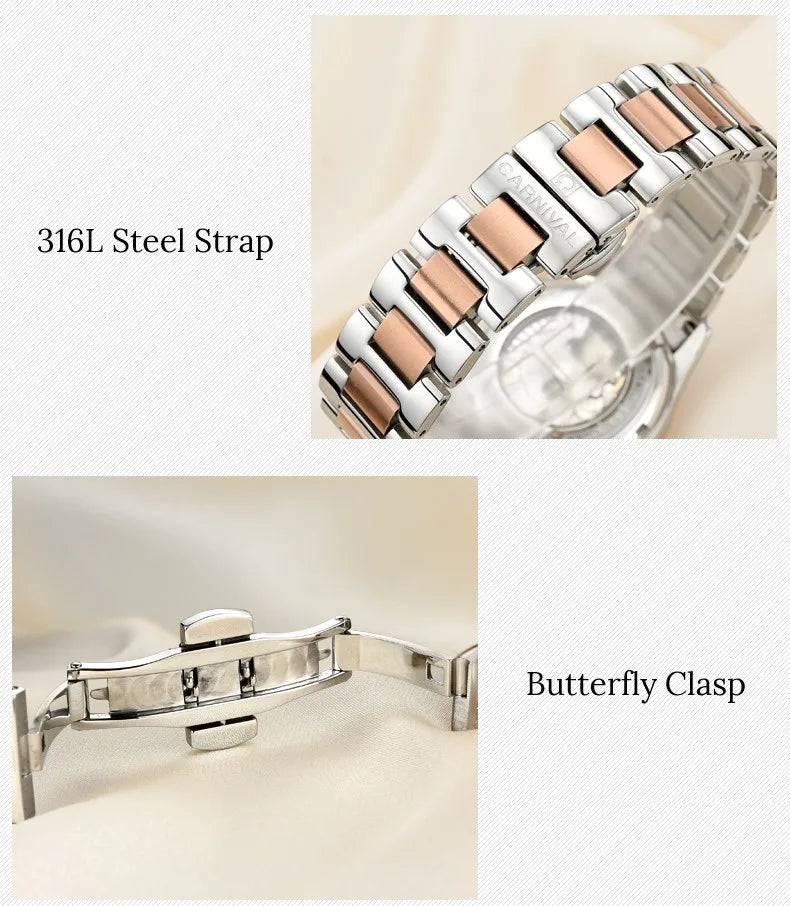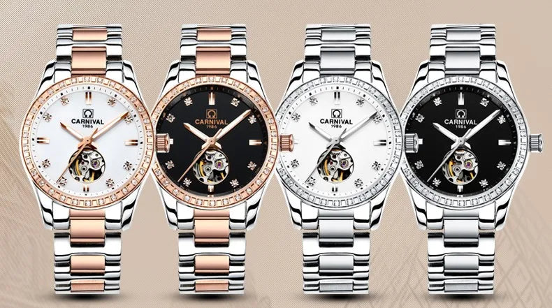 CARNIVAL Gold Watches for Woman Elegant High Quality Tourbillon Automatic Watch Sapphire Waterproof Stainless Steel Reloj Mujer