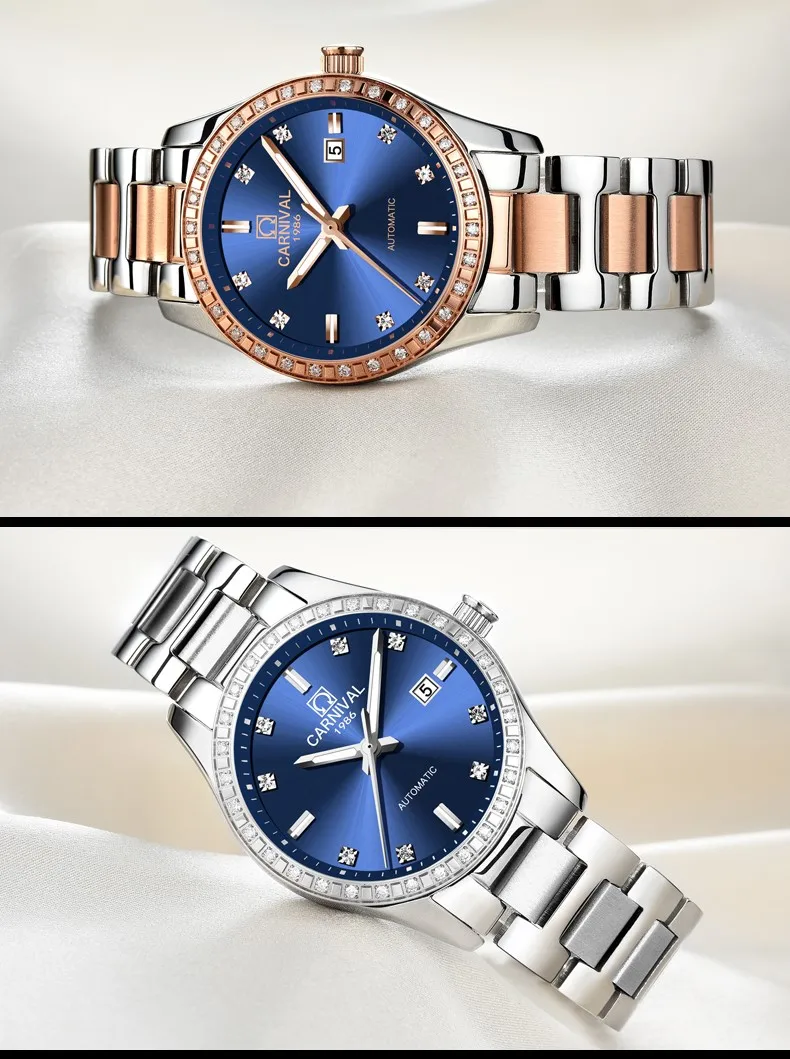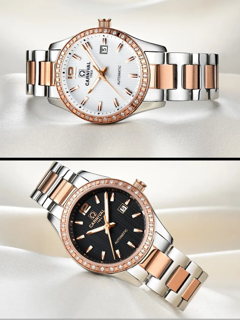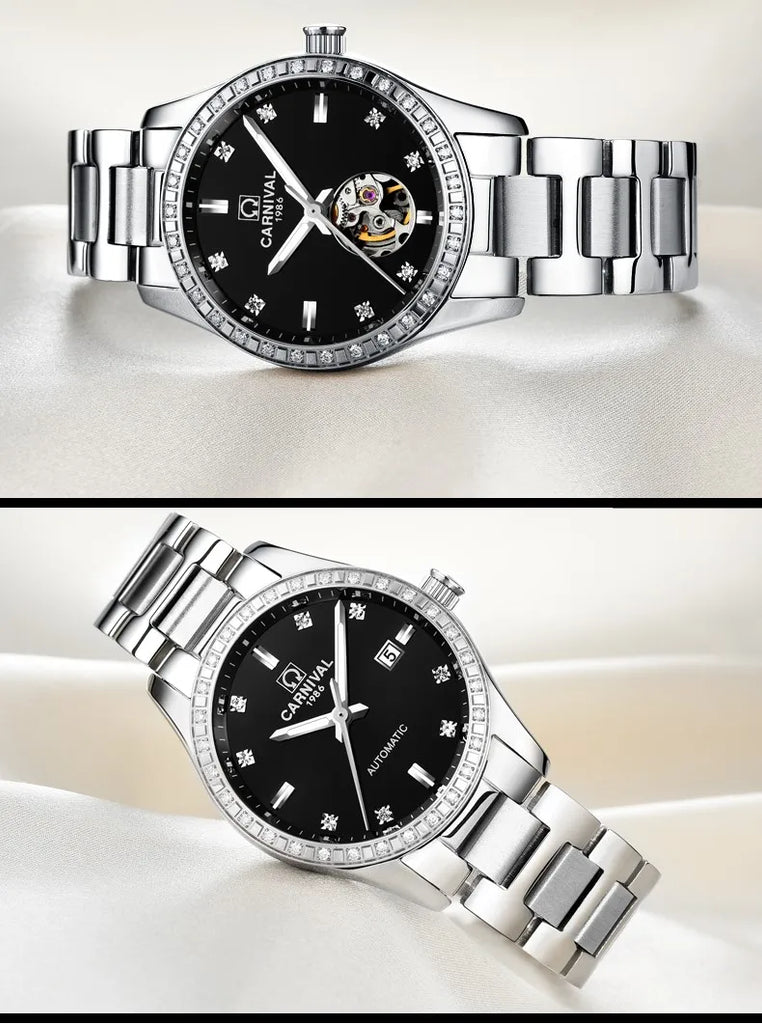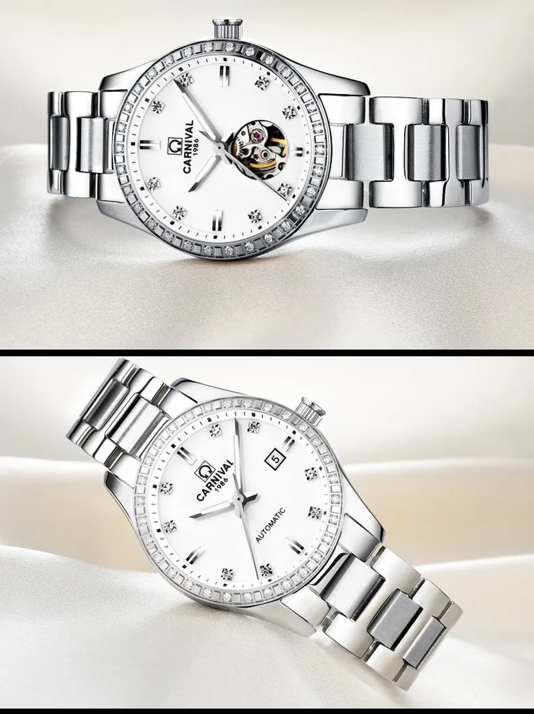 CARNIVAL Gold Watches for Woman Elegant High Quality Tourbillon Automatic Watch Sapphire Waterproof Stainless Steel Reloj Mujer