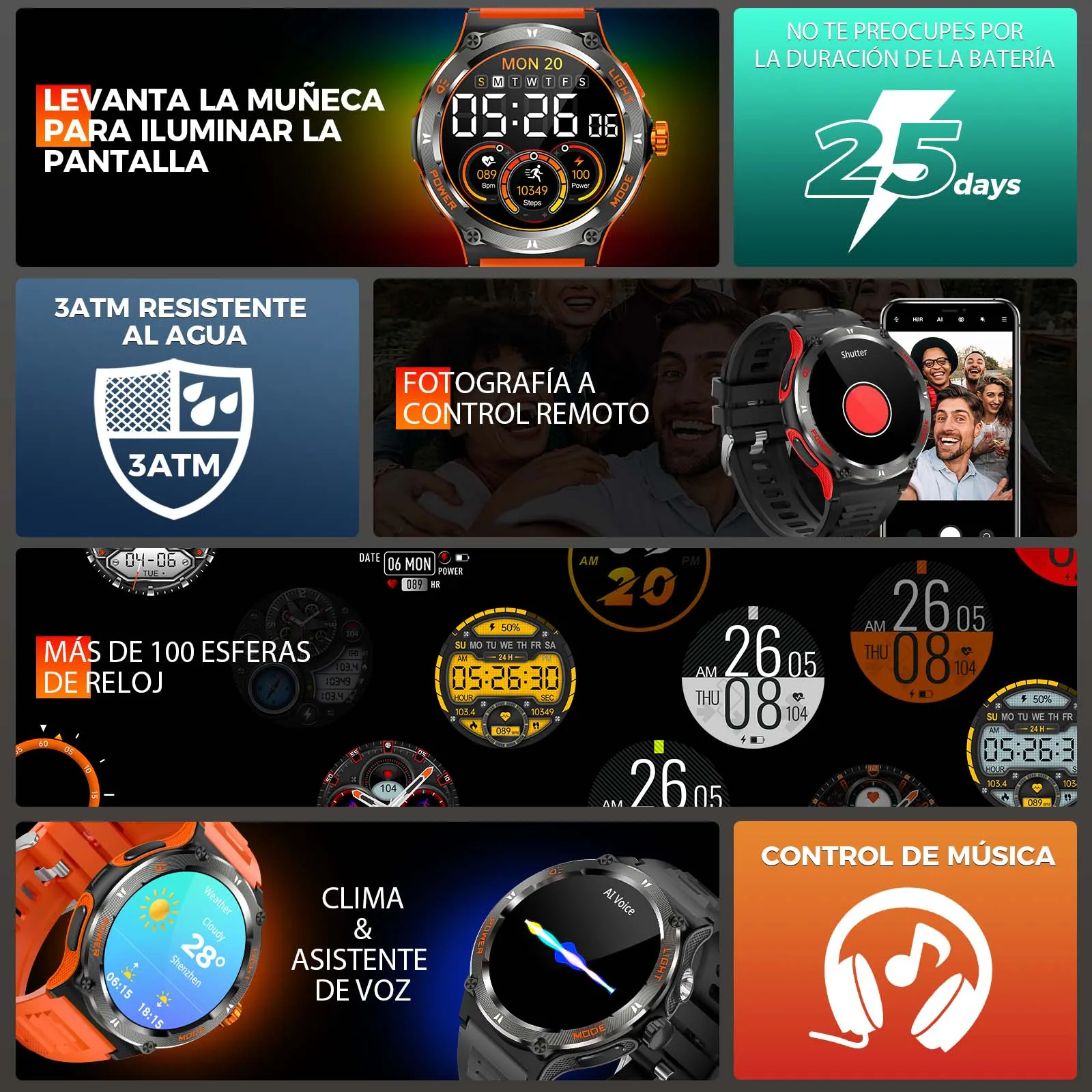 Reasons to recommend EIGIIS KT763ATM waterproofCompassLED Flashlight500 mAh large capacity batteryOver 100 watch facesHealth monitoringHeart rate, blood oxygen saturation, pressure monitoring, sleep analysis, female menstrual cycle recording.100+ sports modesRecord calories, exercise time, steps, distance and real-time heart rate and other data.Push messageIncoming call reminder, APP message notification, drink water reminder, sedentary reminderPractical functionsVoice assistant, remote camera, personal business card, world clock, music control, timer, stopwatch, alarm clock, calendar, weather forecast, calculator, etc.