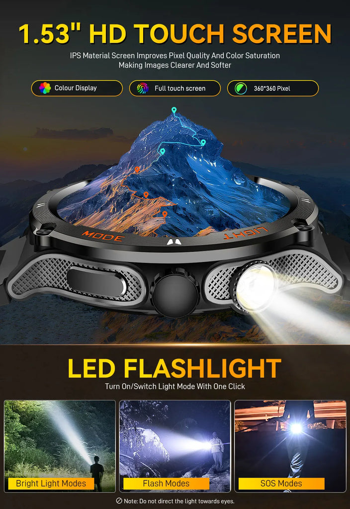 EIGIIS KT76 Smart Watch Men’s 3ATM Waterproof Compass LED Flashlight Bluetooth Call