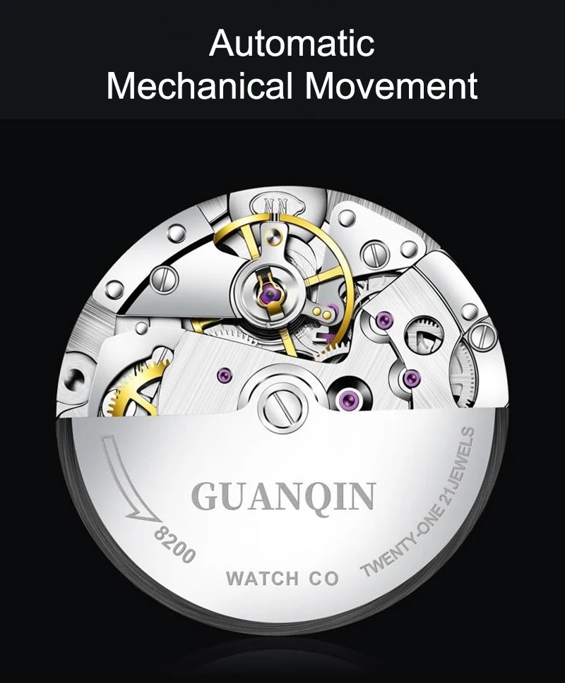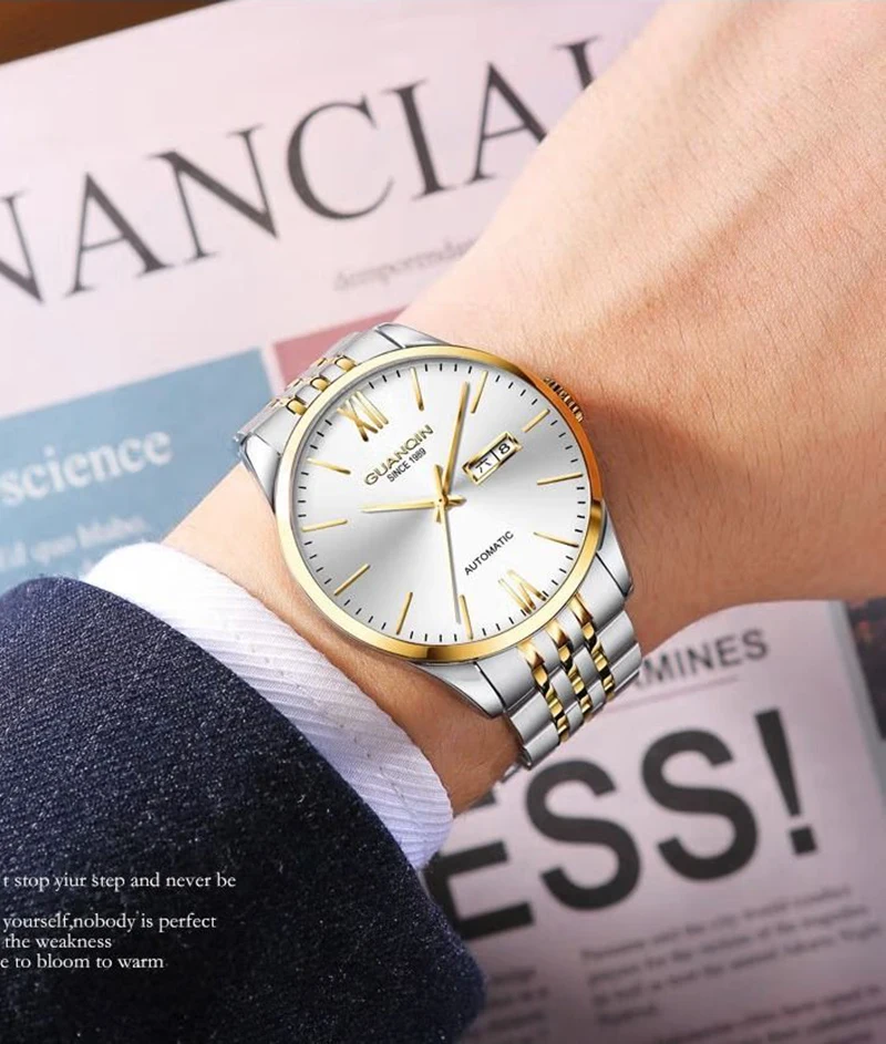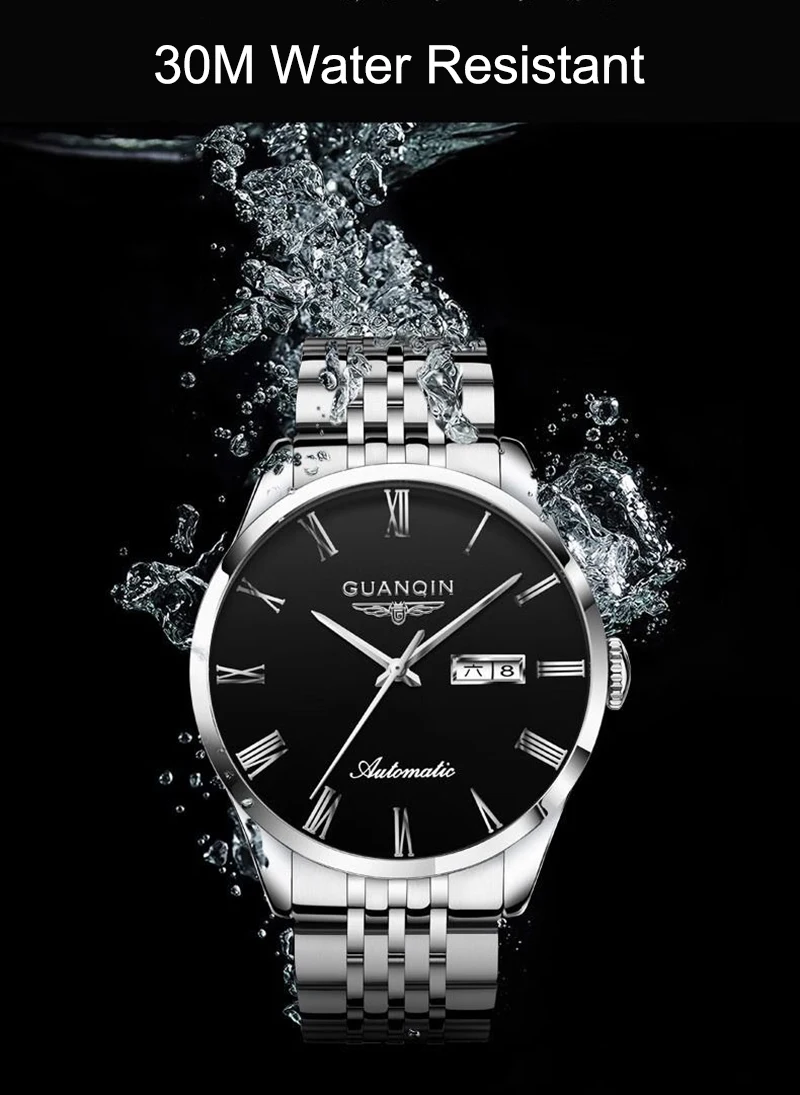 GUANQIN Men's Luxury Automatic Watch – Stainless Steel, Date, Week, Waterproof
