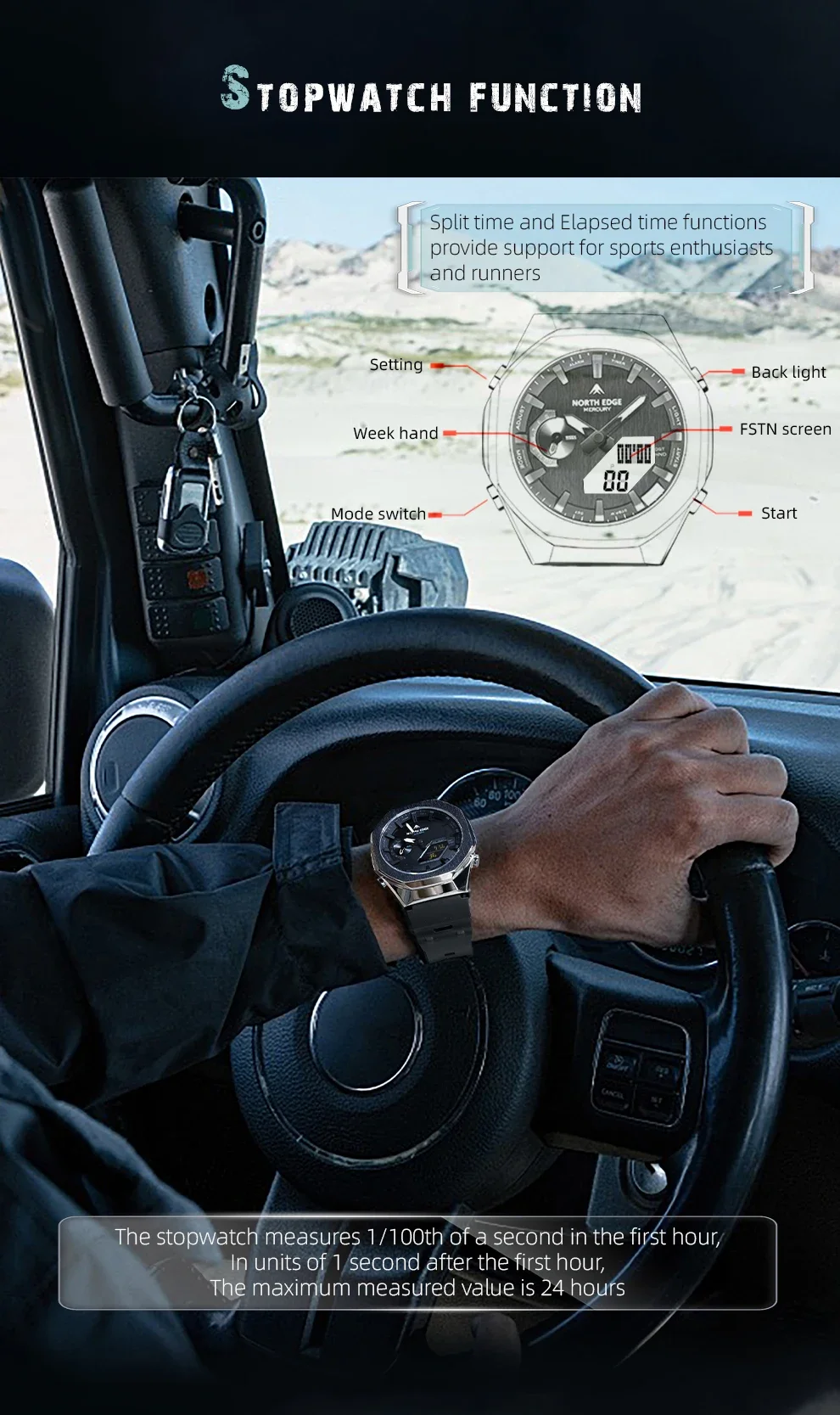 NORTH EDGE MERCURY Sports Watch – Digital Quartz, Stopwatch, World Time, 50M Waterproof