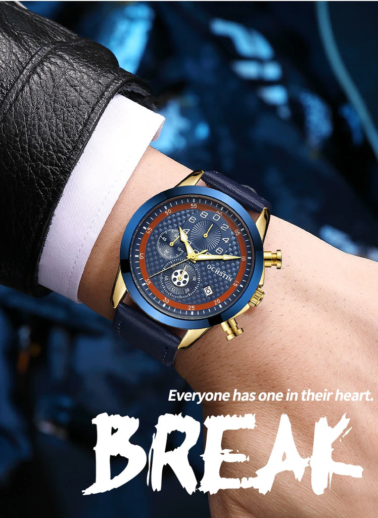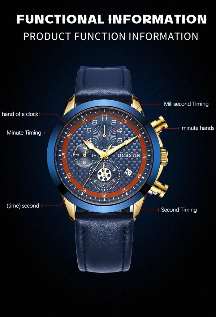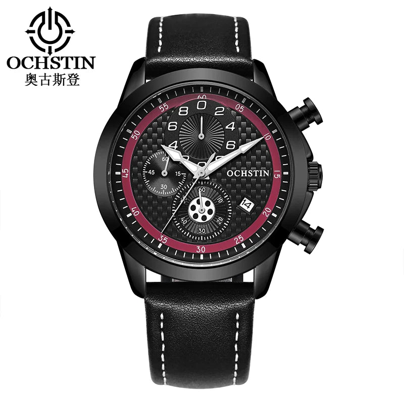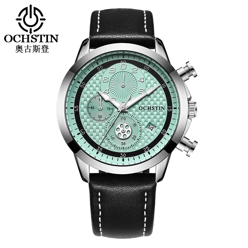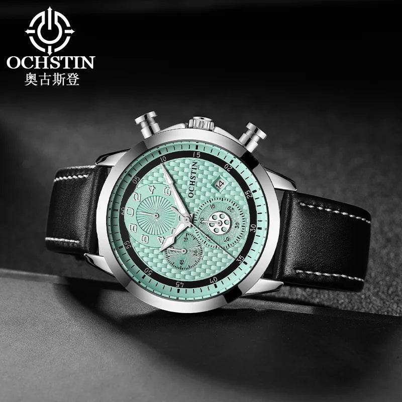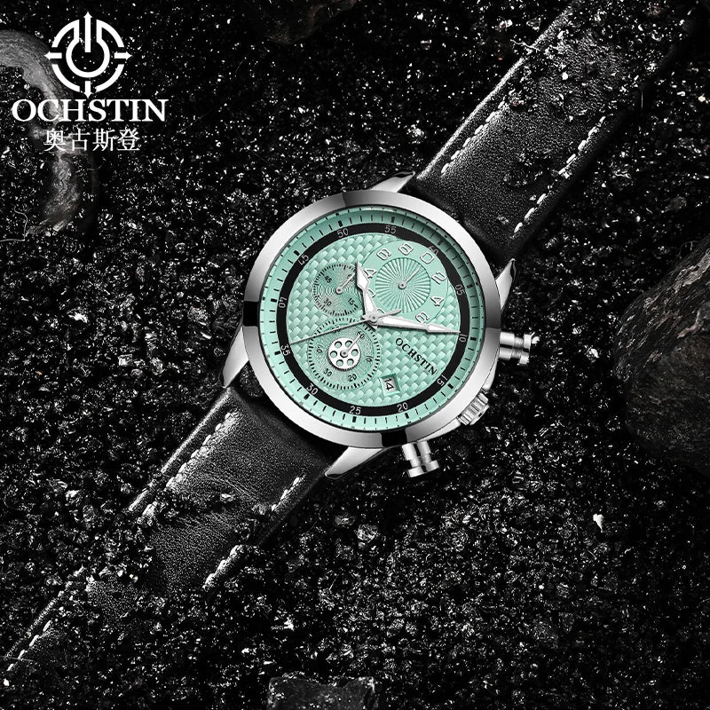 OCHSTIN Men’s Quartz Chronograph Watch – Waterproof, Leather Strap, Luminous Hands, Luxury Wristwatch
