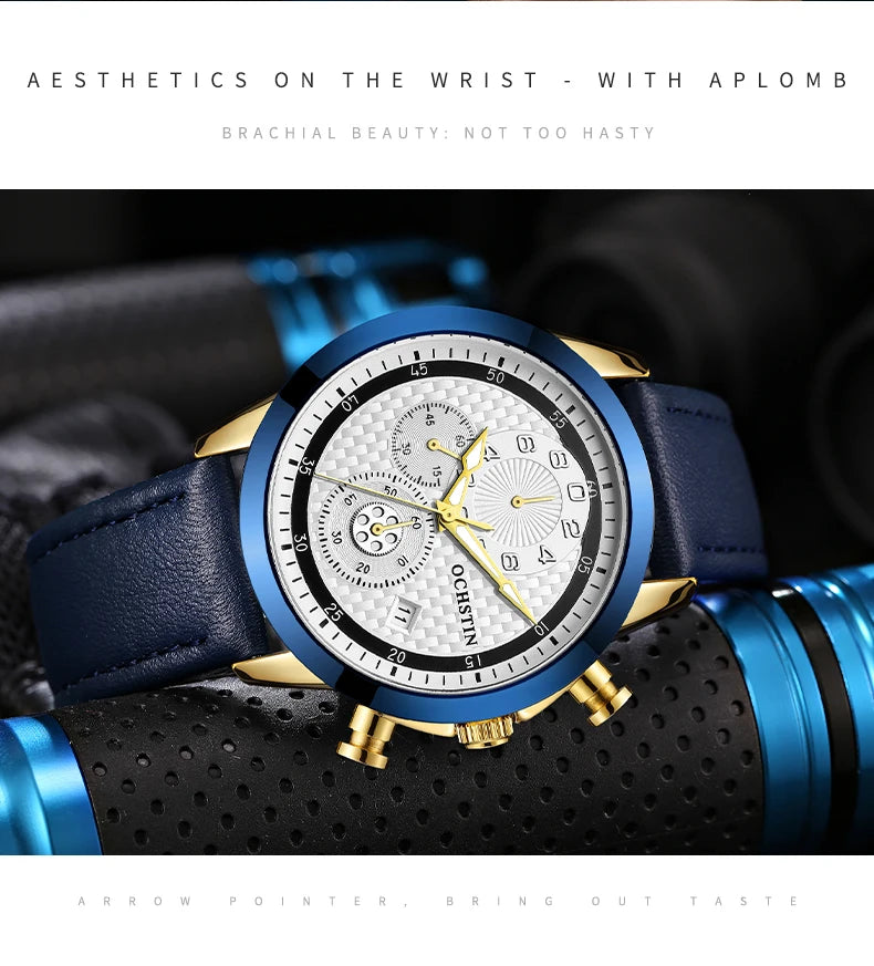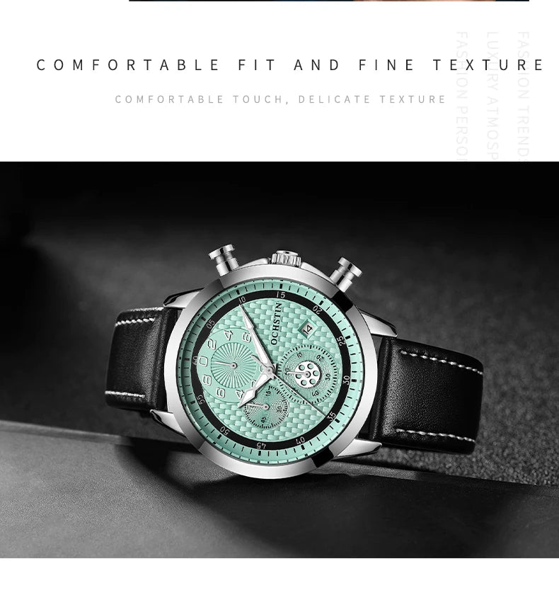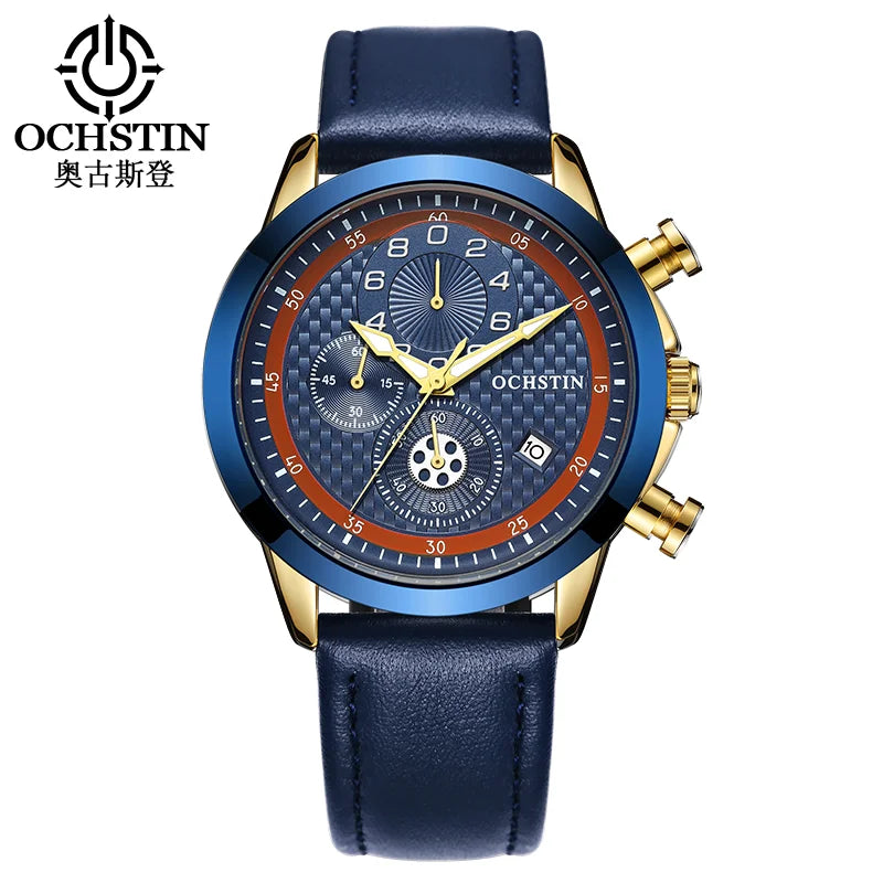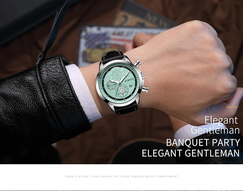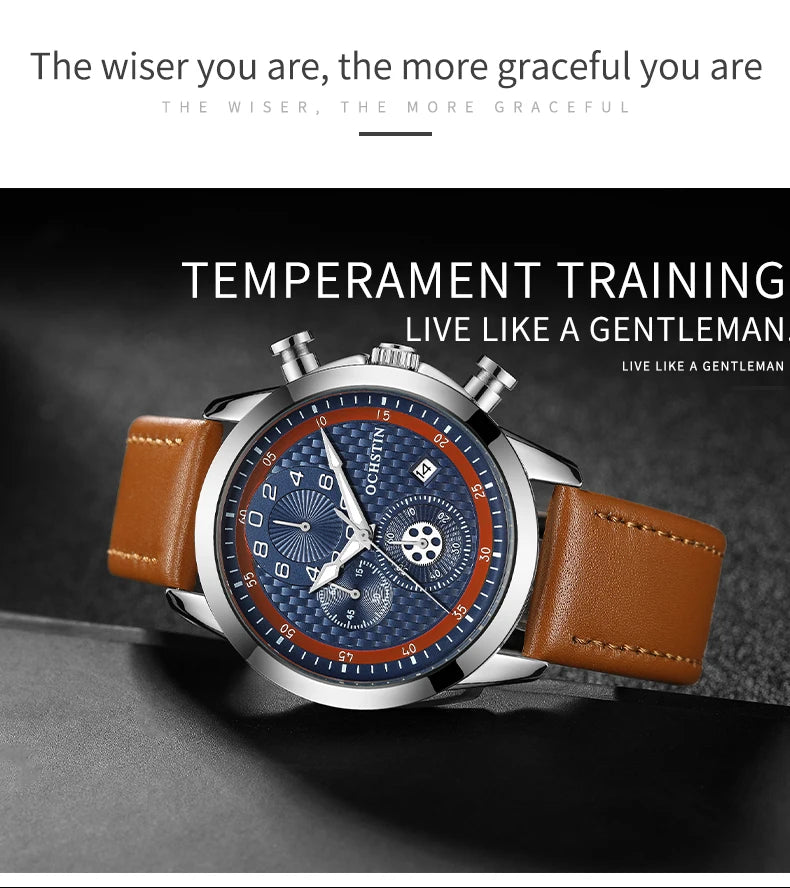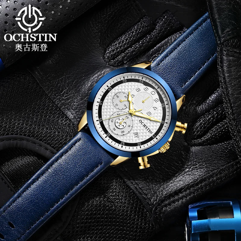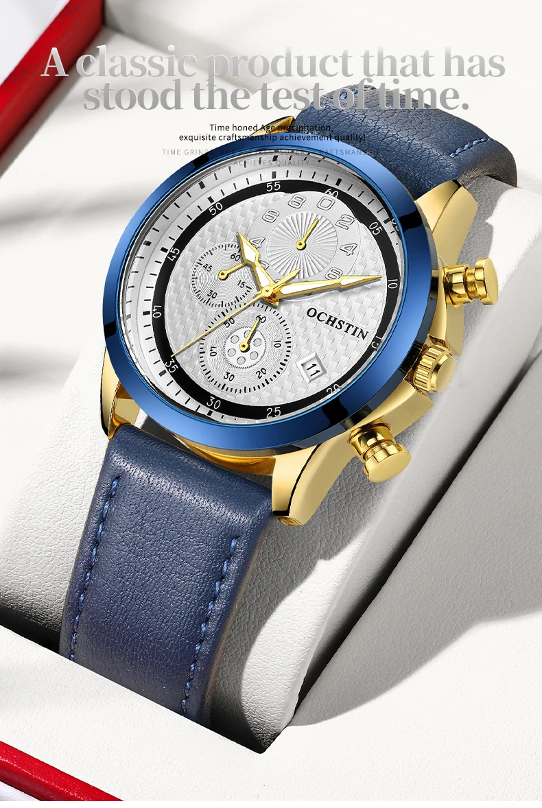 OCHSTIN Men’s Quartz Chronograph Watch – Waterproof, Leather Strap, Luminous Hands, Luxury Wristwatch