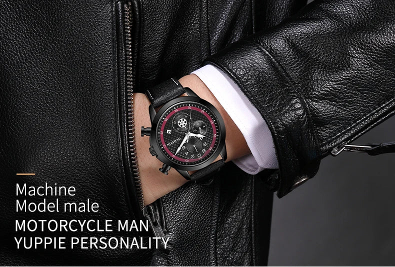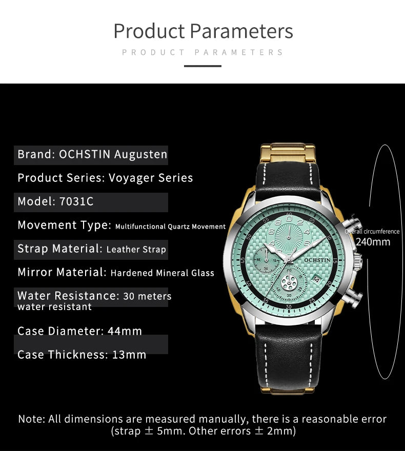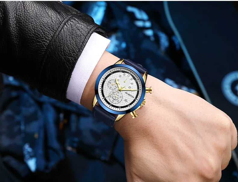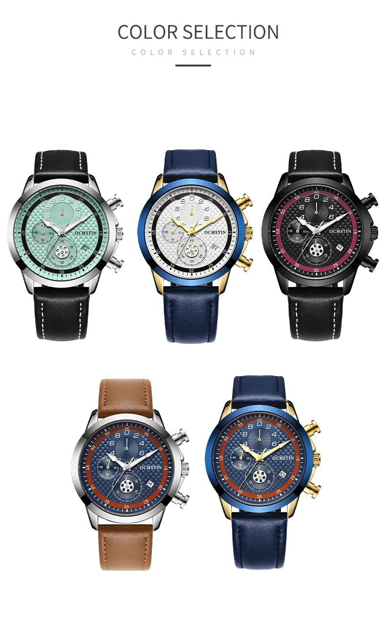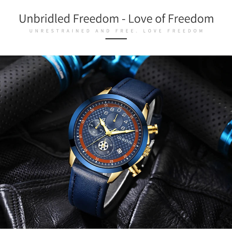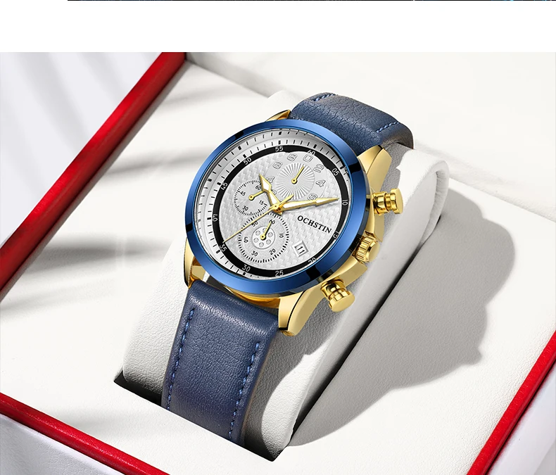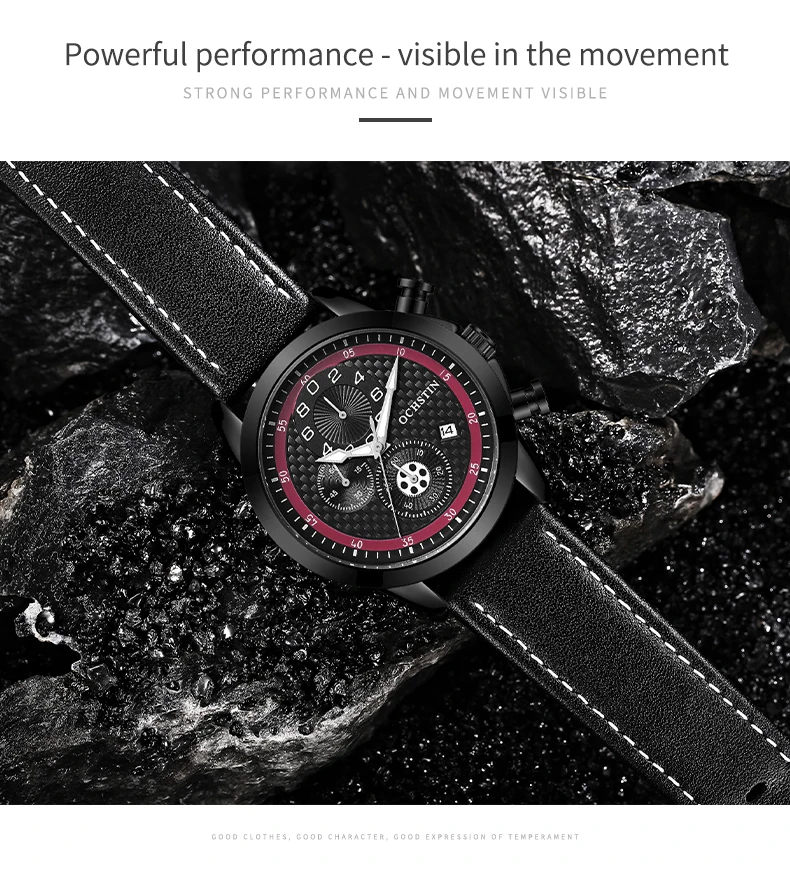 OCHSTIN Men’s Quartz Chronograph Watch – Waterproof, Leather Strap, Luminous Hands, Luxury Wristwatch