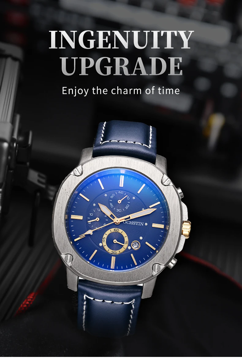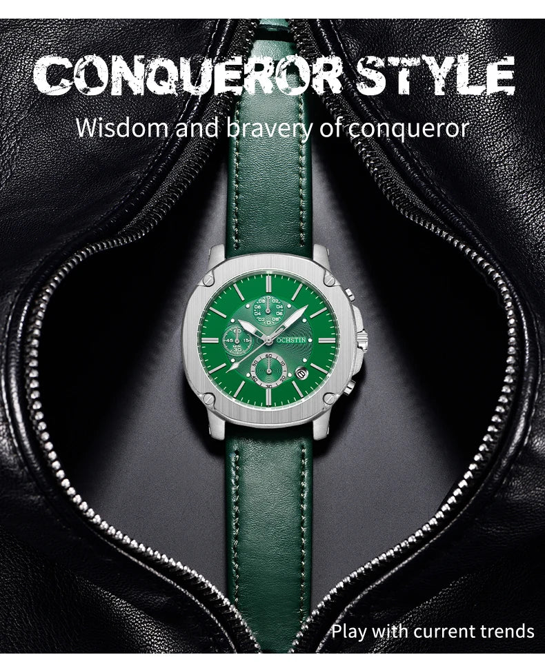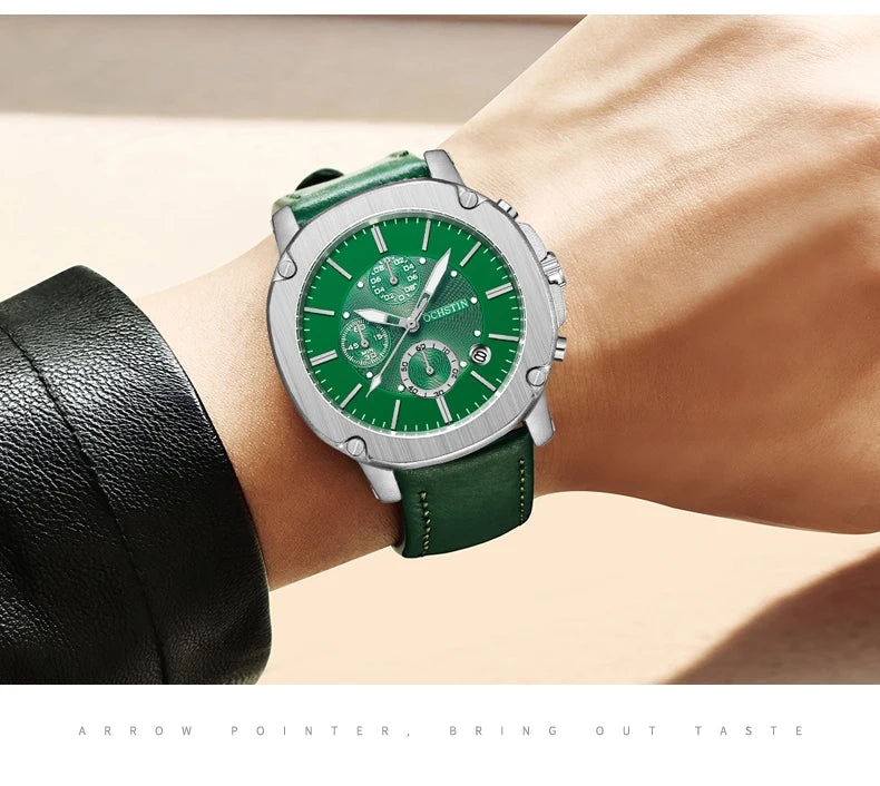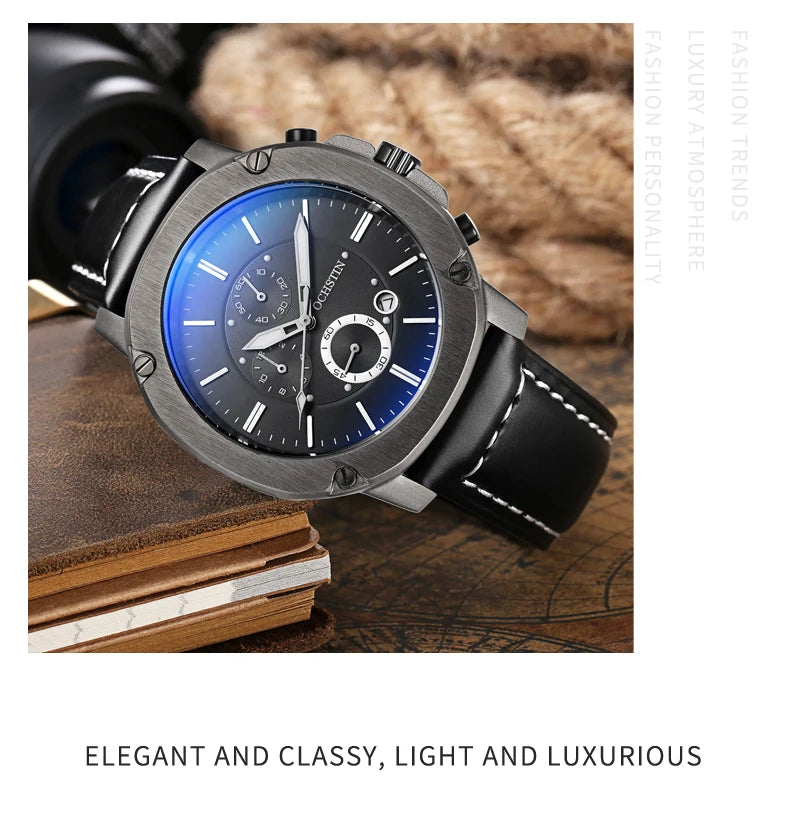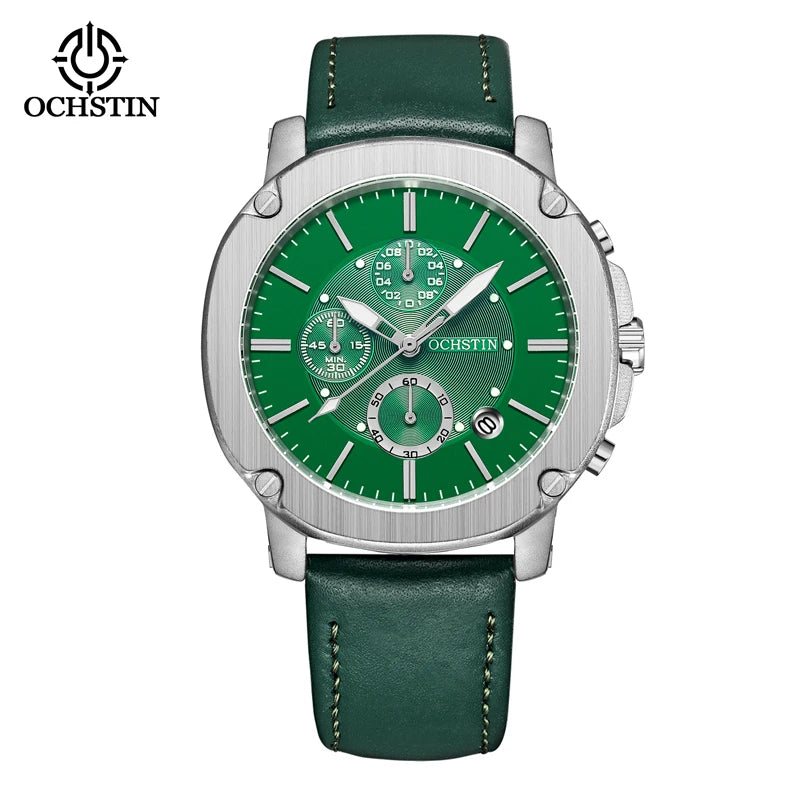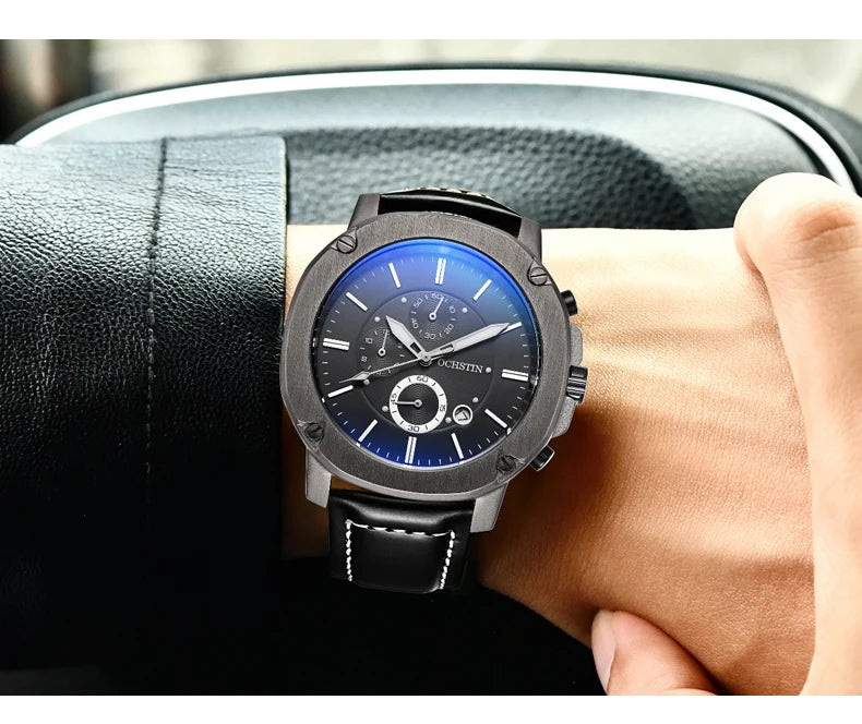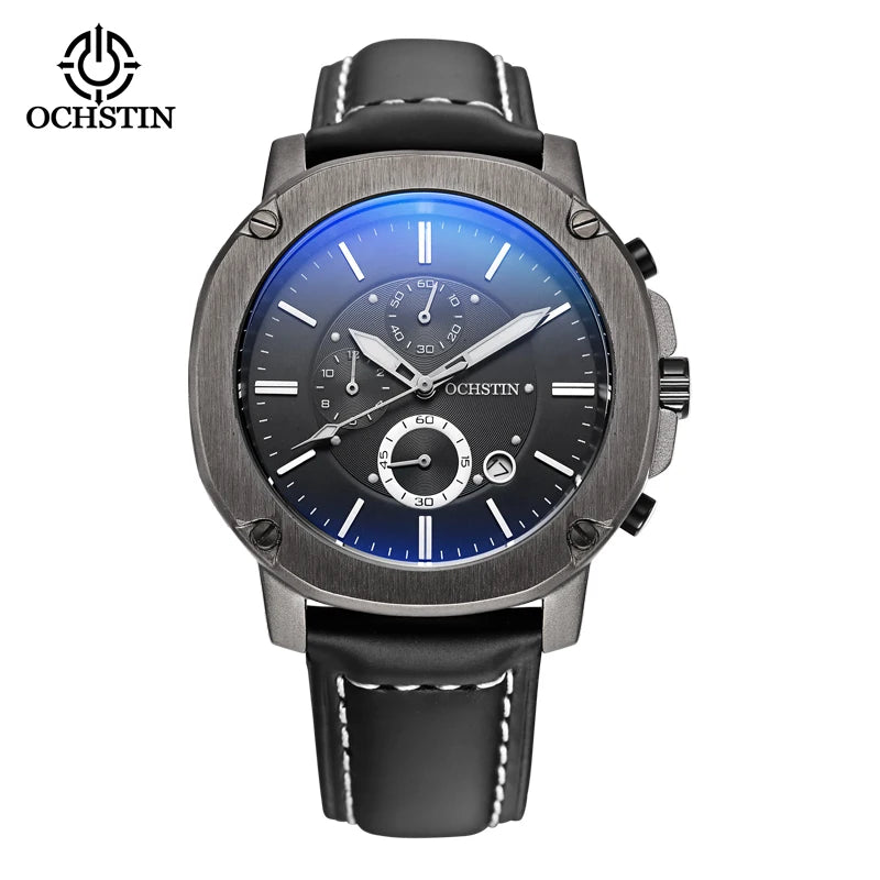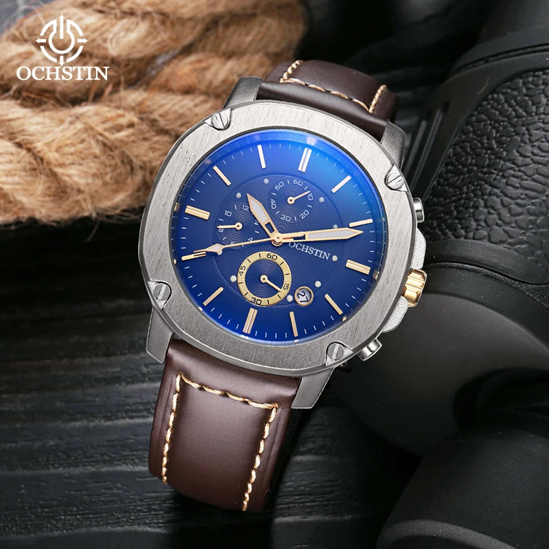 OCHSTIN Men’s Quartz Chronograph Watch – Waterproof, Leather Strap, Multifunction, Casual Business Style