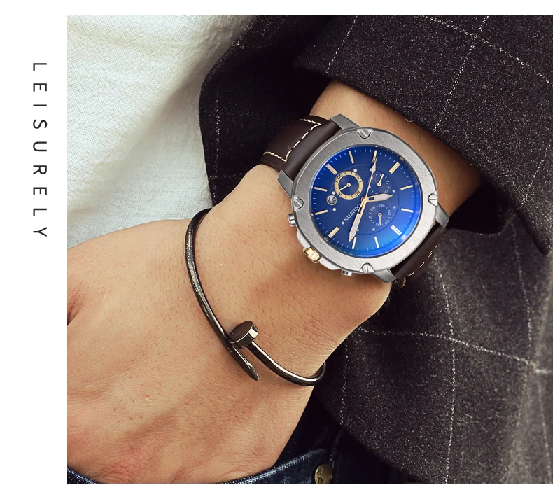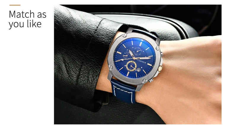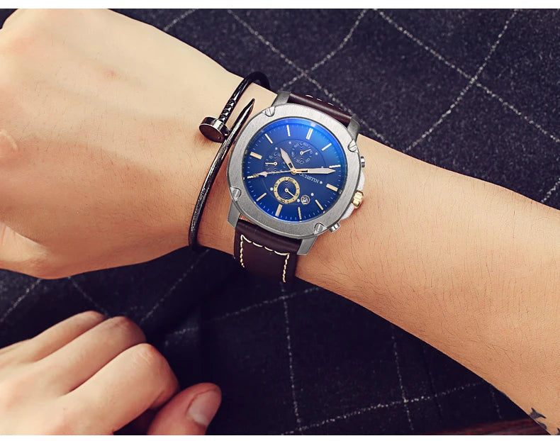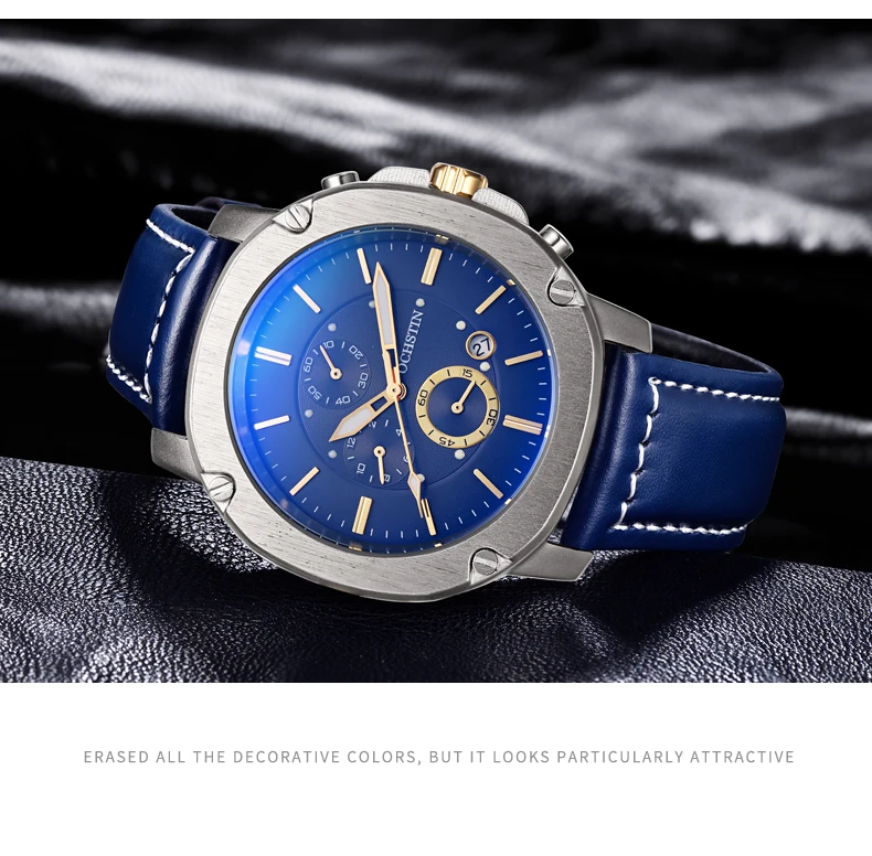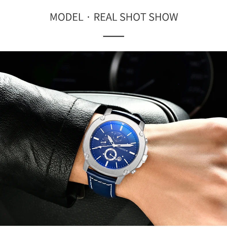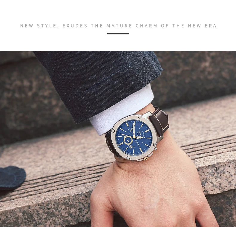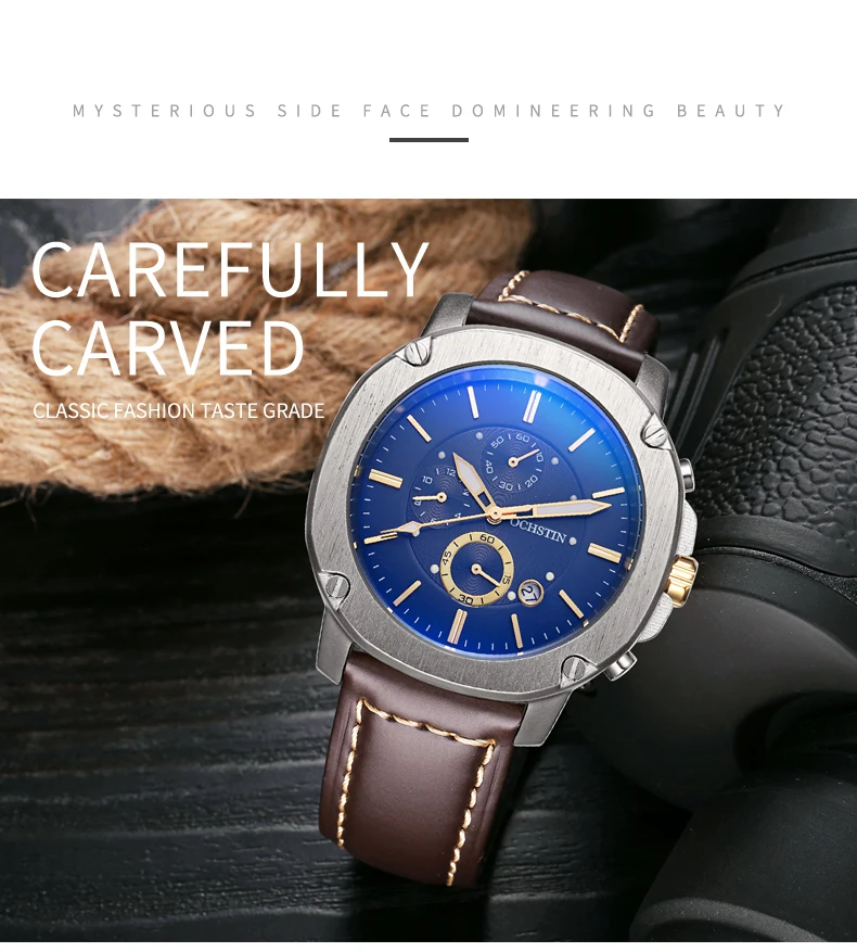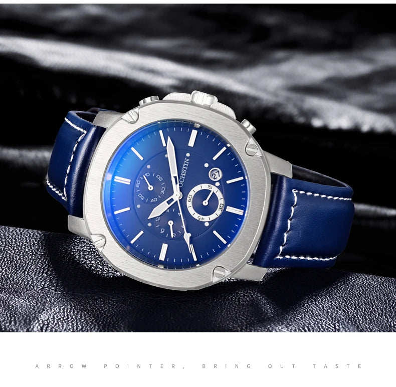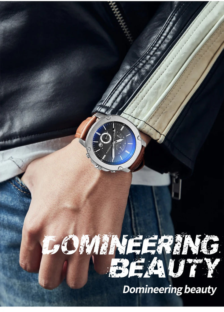OCHSTIN Men’s Quartz Chronograph Watch – Waterproof, Leather Strap, Multifunction, Casual Business Style