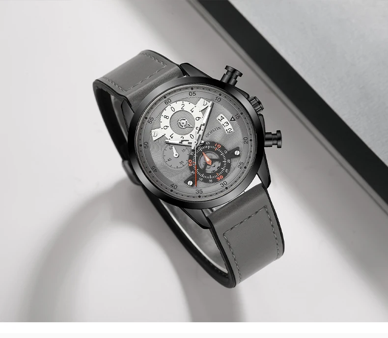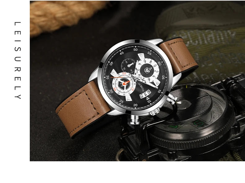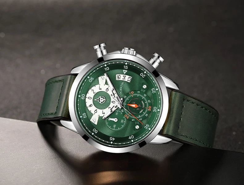 OCHSTIN Men’s Quartz Watch – Waterproof, Leather-Covered Rubber Strap, Classic Casual Wristwatch