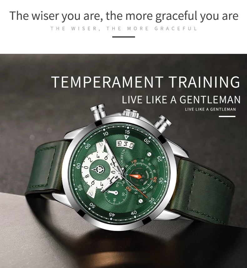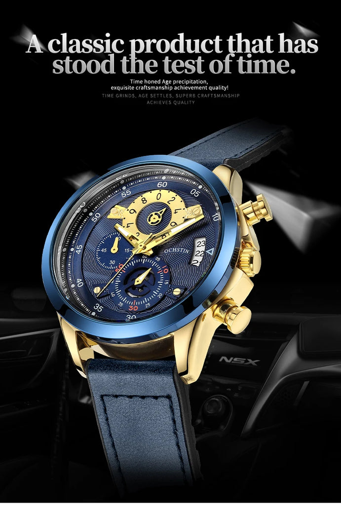 The OCHSTIN Men’s Quartz Watch – Waterproof, Leather-Covered Rubber Strap, Classic Casual Wristwatch is evocative, to say the least, but that's why you're drawn to it in the first place.