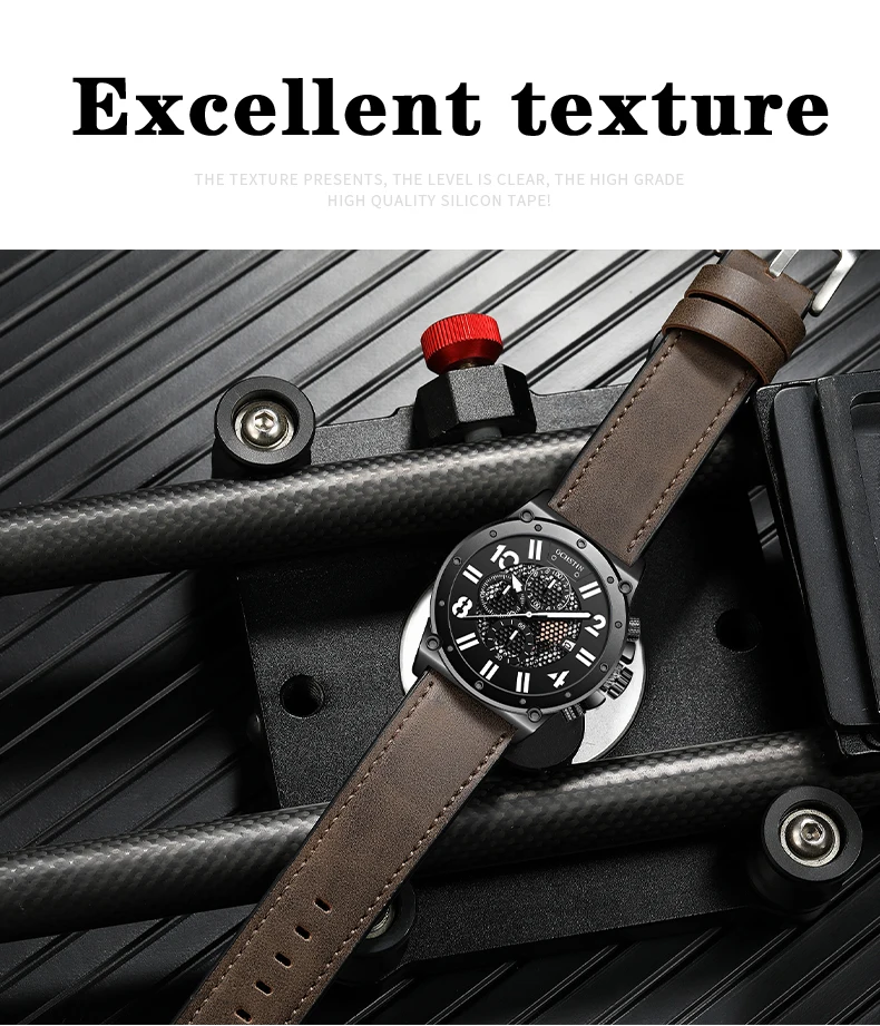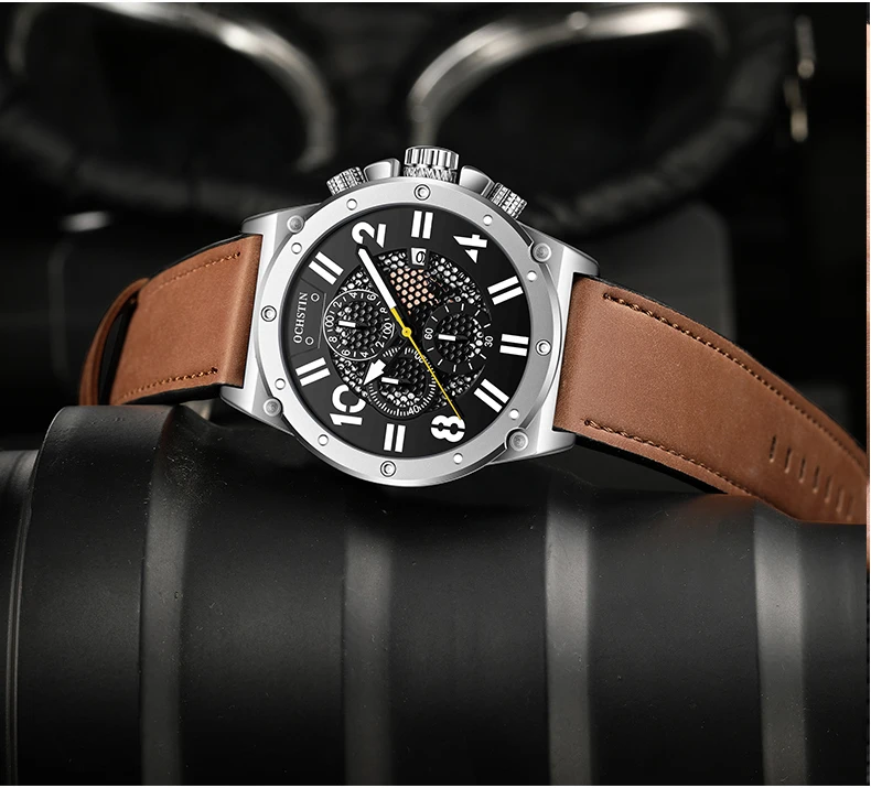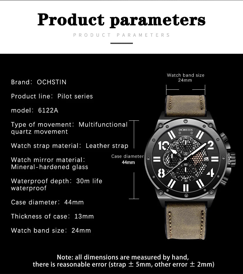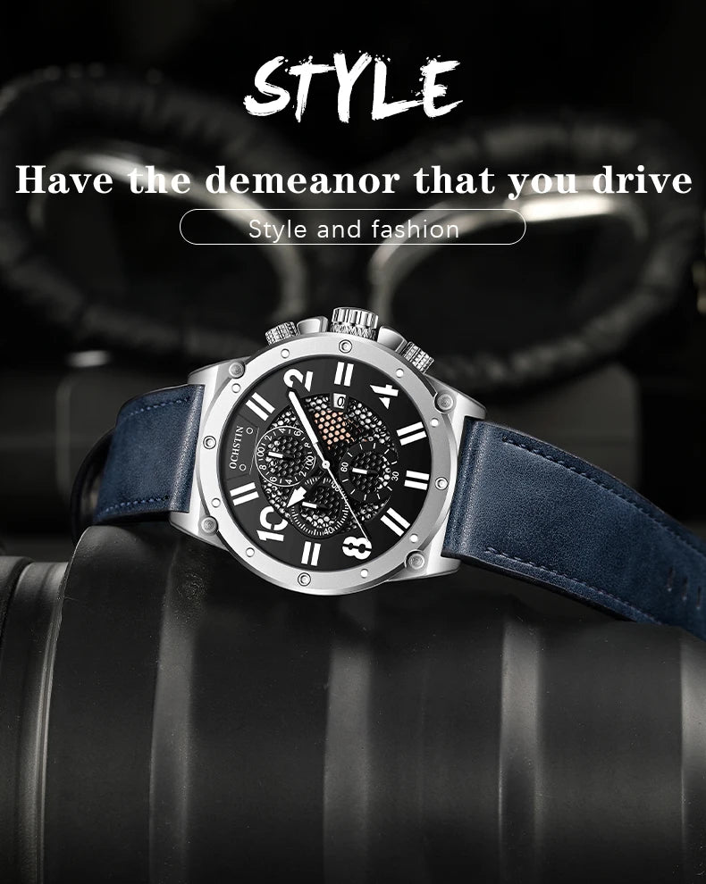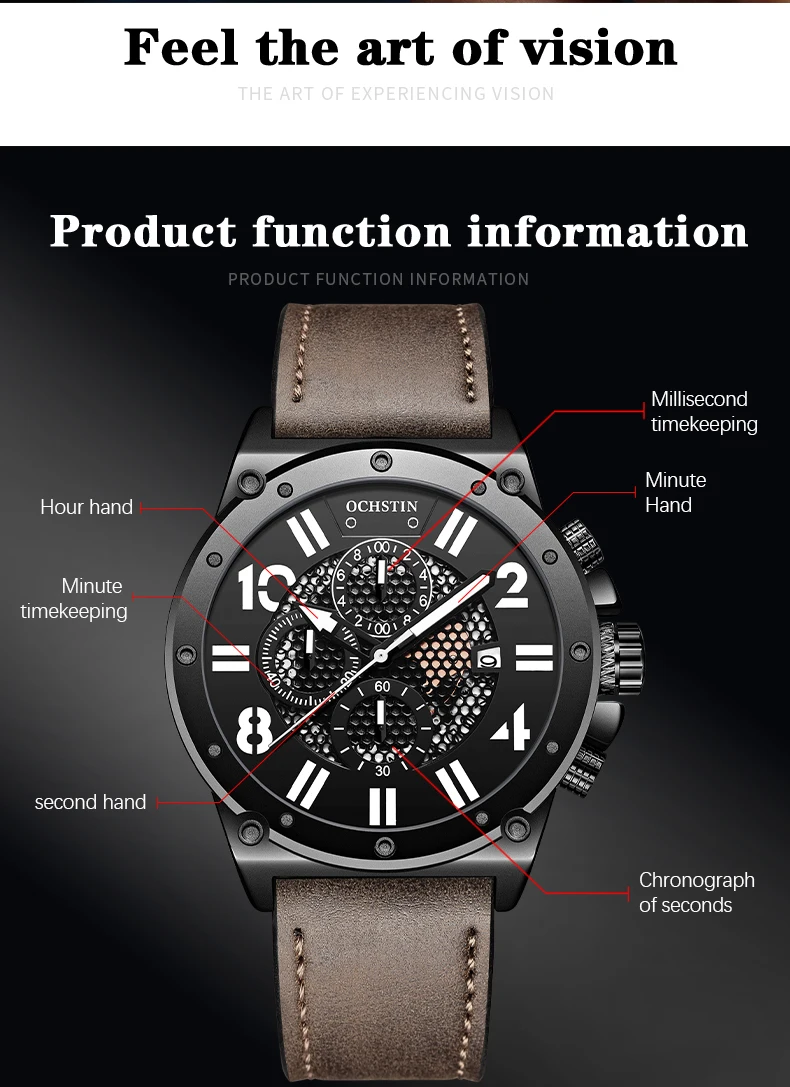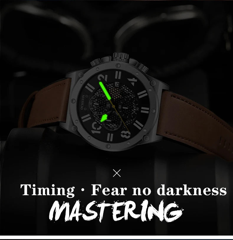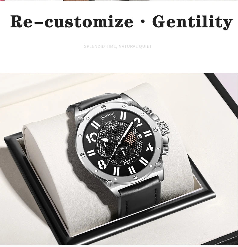 OCHSTIN Men’s Quartz Watch – Waterproof, Leather Strap, Luminous Hands, Multifunction Chronograph