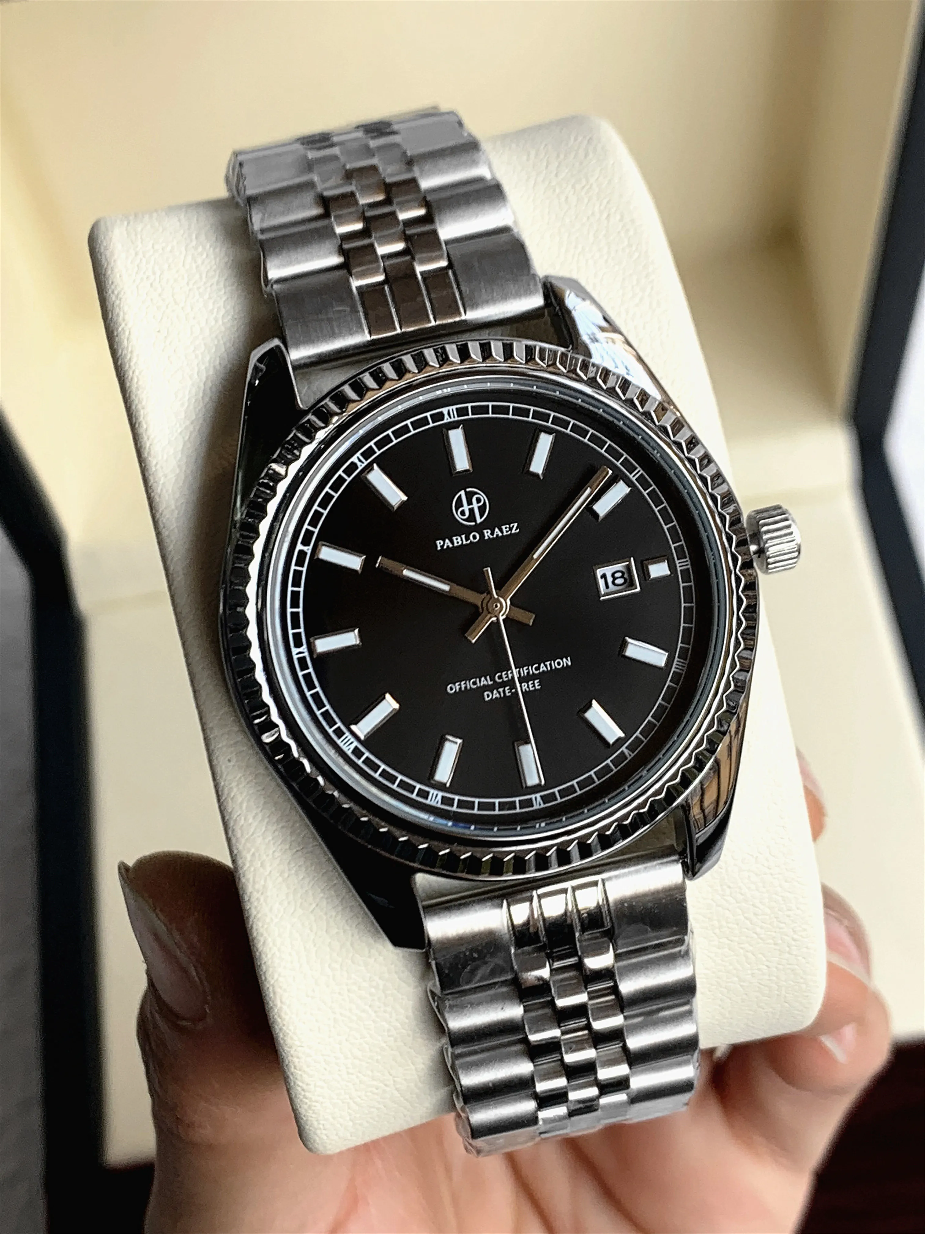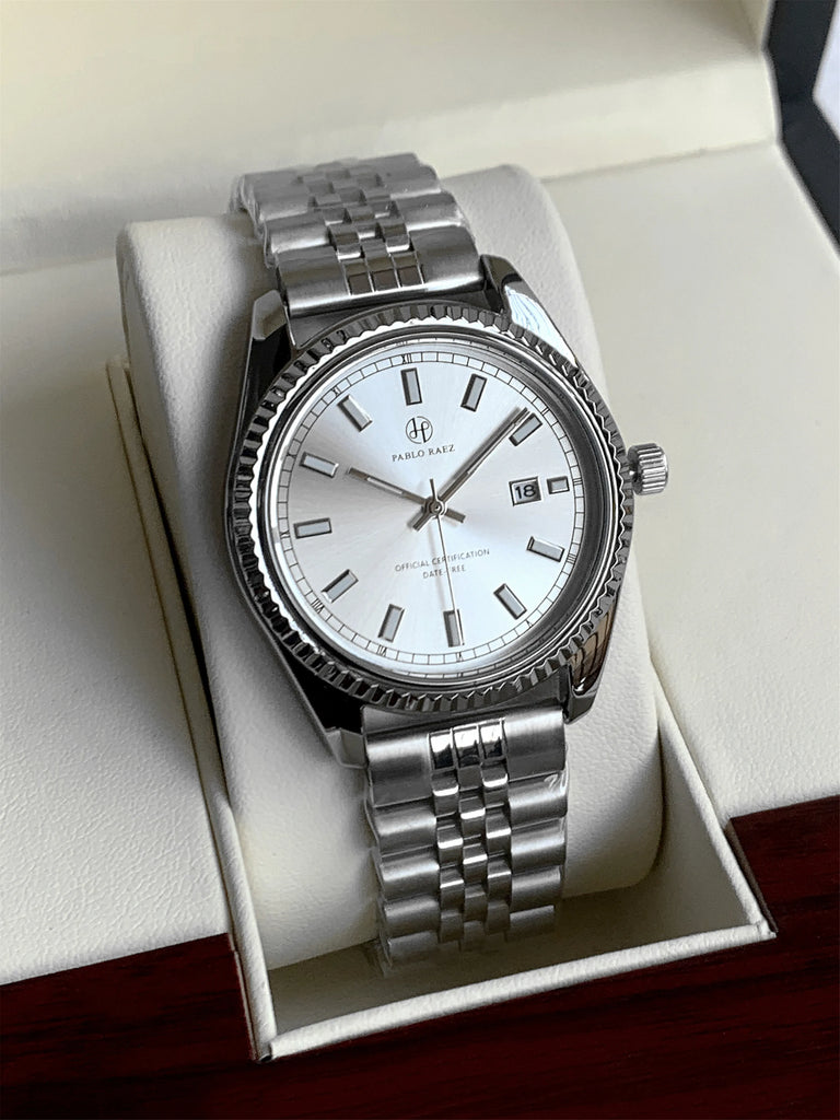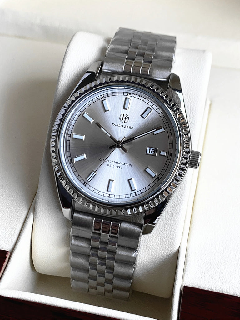 PABLO RAEZ Men's Luxury Silver Watch – SUS304 Steel, Luminous, Waterproof