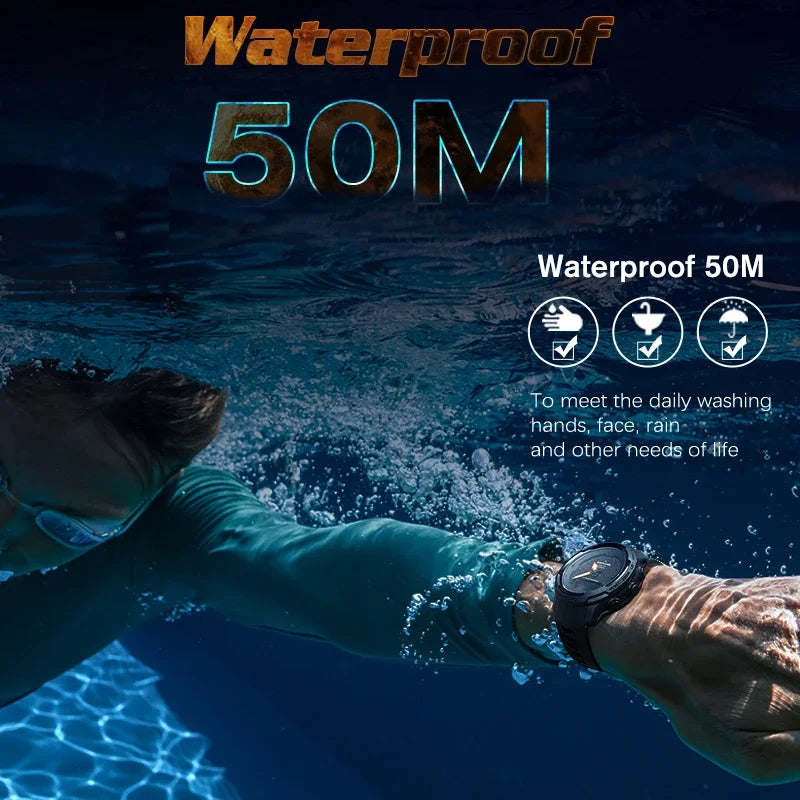 This watch is waterproof 50M, can dive, swim, get in the rain, but not hot water, it is forbidden to wear the watch in bath, shower, sweat, sauna