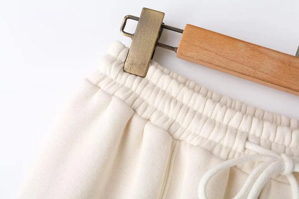 HH Women's 2-Piece Tracksuit Set – Retro Solid Color Bomber Jacket Sweatshirt + High-Waisted Lace-Up Velvet Pants