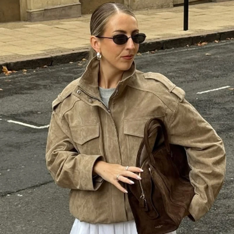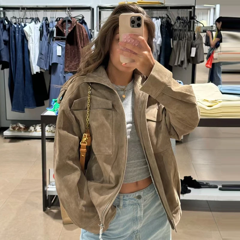 HXAO Leather Jacket Women Autumn Oversized Bomber Jacket New In Coats & Jackets Stand Collar Long Sleeve Tops Fashion Outerwear