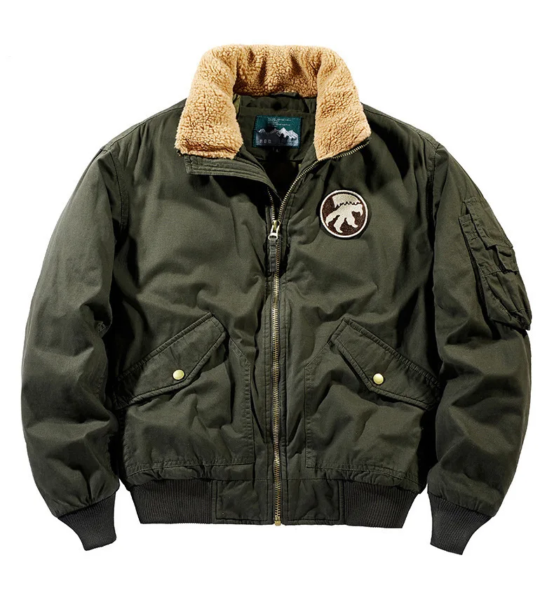 Men’s Winter Aviator Bomber Jacket – Thick Flannel Workwear Parka, Casual Loose Fit, Warm Outerwear