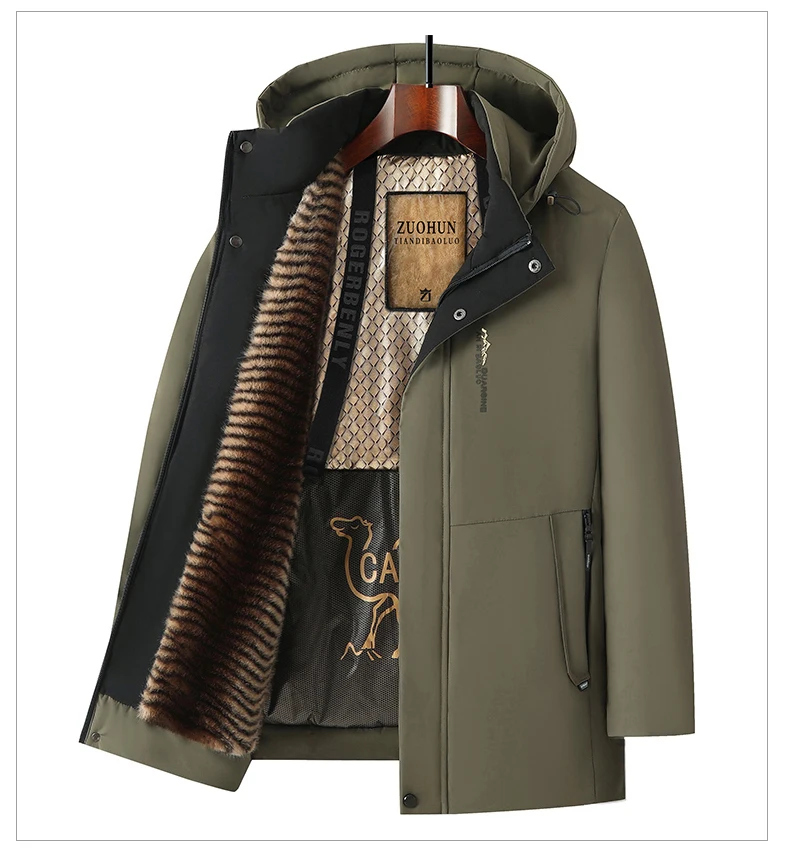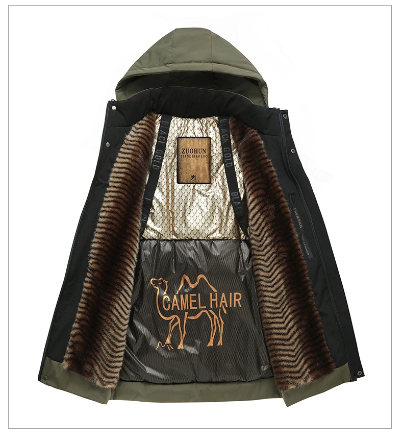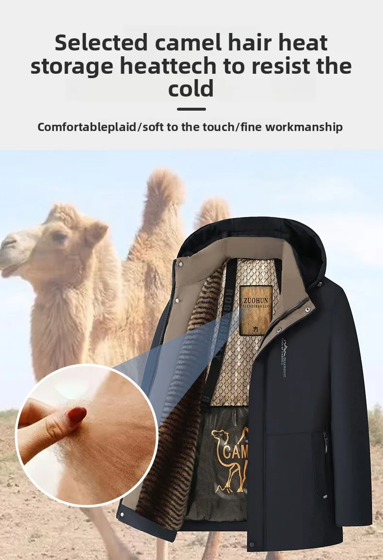 Men's Luxury Camel Fleece Parka Jacket – Top-Grade 5-Layer Tech Windbreaker Coat, Heavy Plush Lining Winter Outerwear