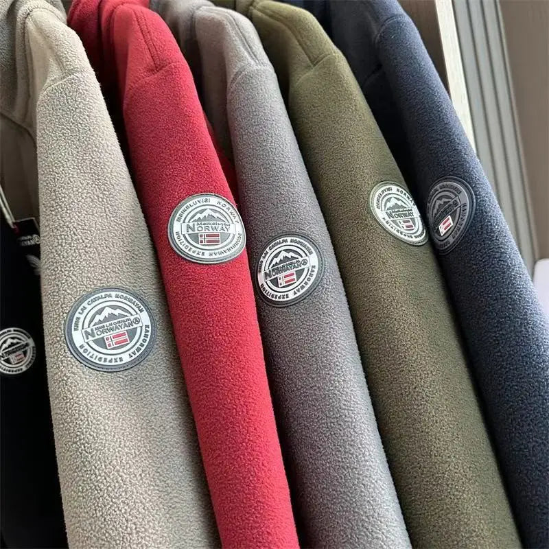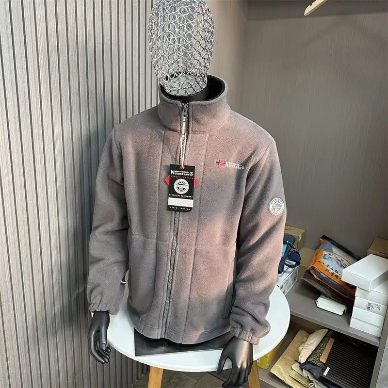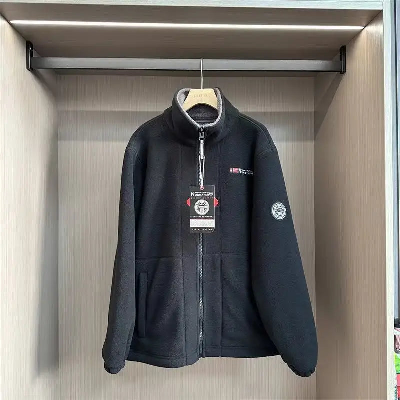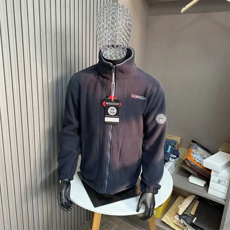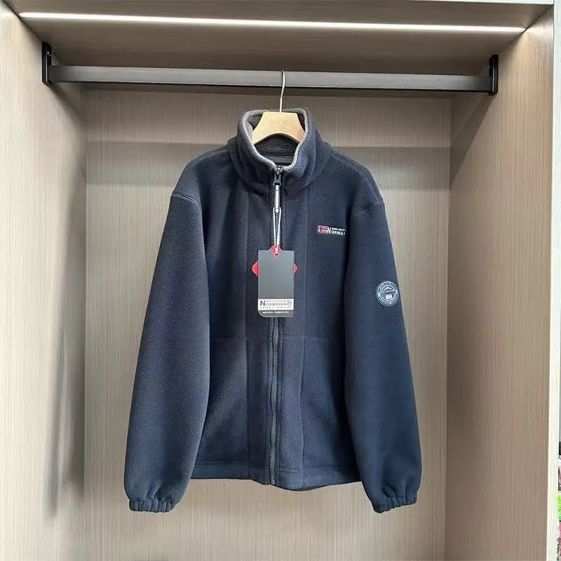 Norway Men’s Winter Fleece Jacket Coat – Thick Warm Casual Zip-Up, Stand Collar, Ameika Style
