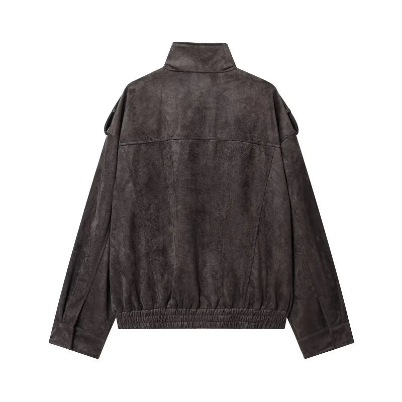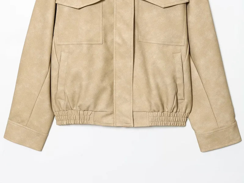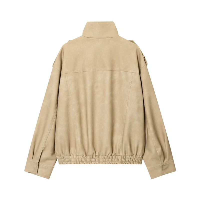 Women's Oversized Suede Bomber Jacket – Zip Up, Demi-Season, Winter Outerwear