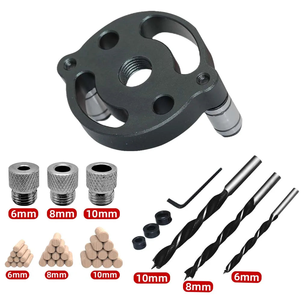 3-10mm Dowel Jig Kit - Self Centering Drill Guide Locator with 8 Steel Bushing -Woodworking Aluminum Alloy Hole Puncher