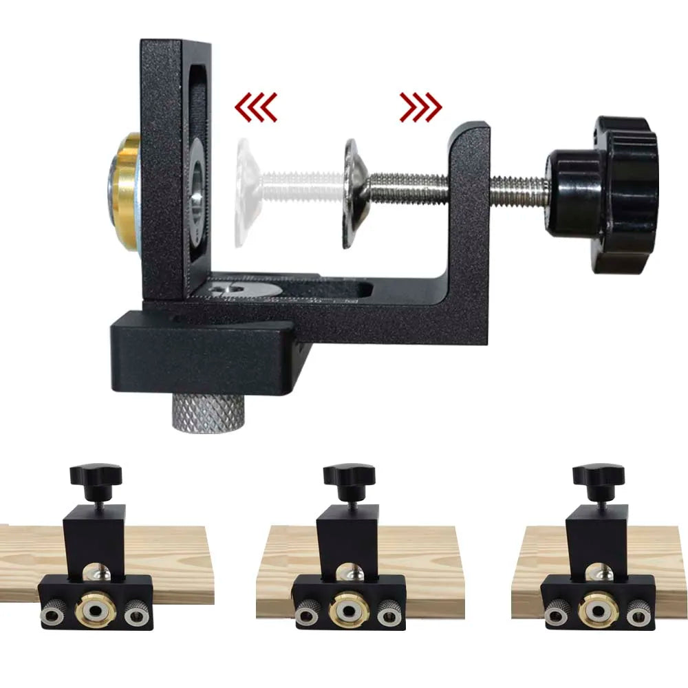3 In 1 Adjustable Woodworking Drilling Guide Locator Puncher Tools Wood Doweling Jigs for Eccentric Wheel Wooden Panel Splicing