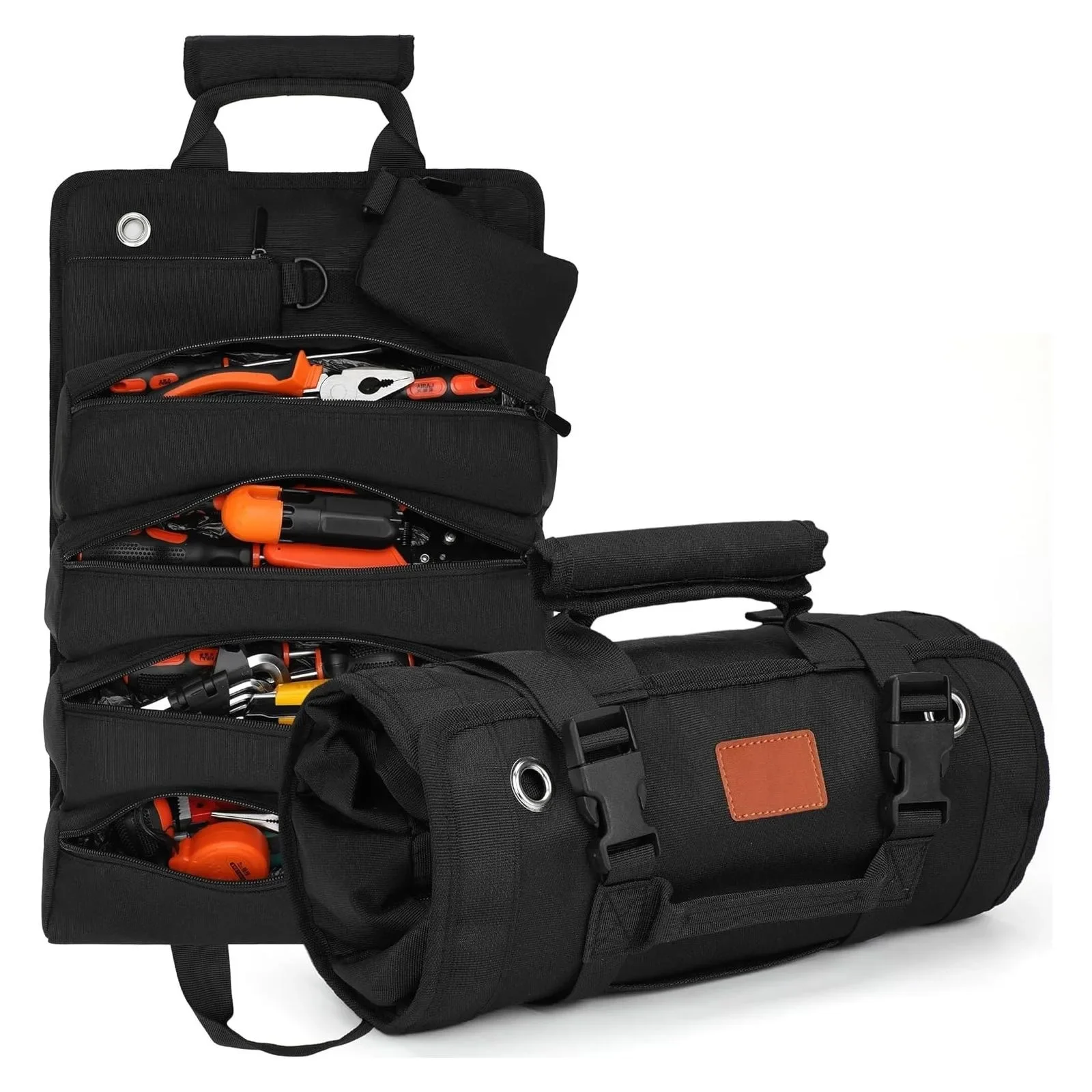 Keep your Tools & Accessories Organized and Carry Them in a Small Tool Roll - Hang The Roll Up Tool Bag Organizer in Your Car Garage or Work shop . Carry this Tool Rool with you as a Mechanic Bag or as a small roll up tool bag for truck Tool Bag