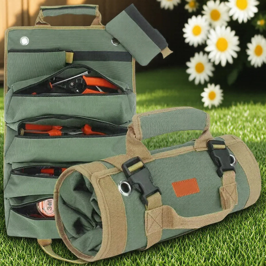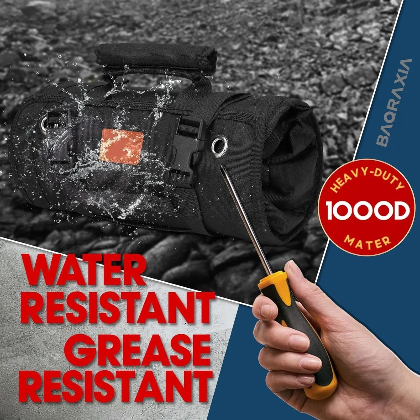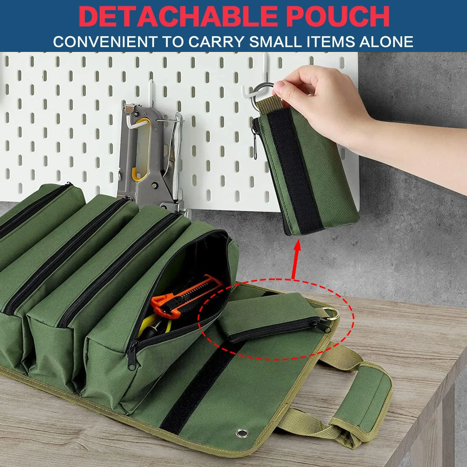 Heavy Duty Roll Up Tool Bag Portable Tool Organizer with 2 Small Pouches for Mechanics Foldable Storage Solution