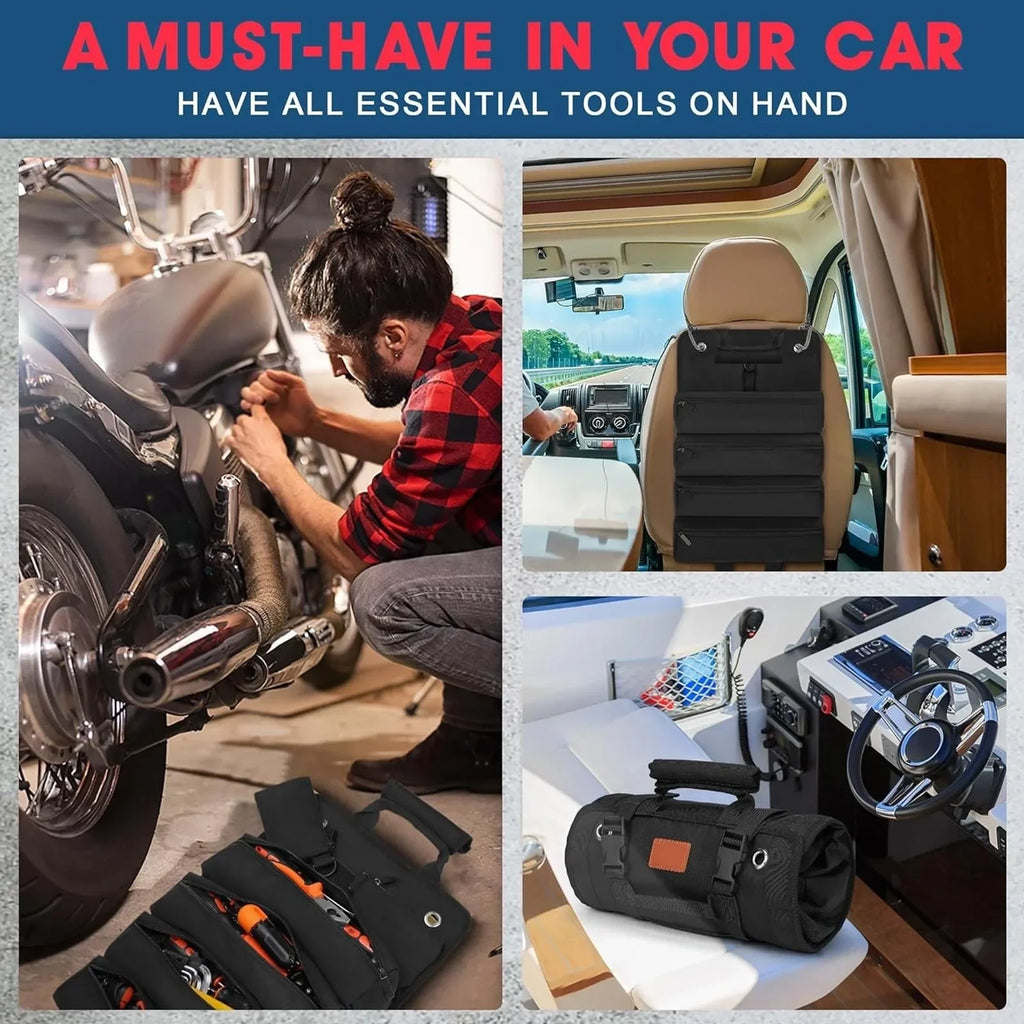 This Tool Wrap Roll is a perfect Gift For Men - The Tool Rolls can be Used as a Boat/Car / Motorcycle Tool Roll or as Emergency Kit Hanging tool bag . Use this official tool roll organizer on the road or as a mechanics tool bag