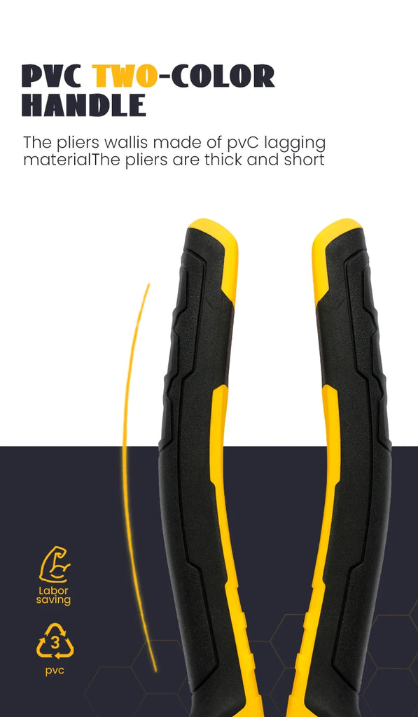 Versatile Pliers Set :The plier set includes 8-inch wire pliers, 6-inch pointed nose pliers, and diagonal pliers, providing a variety of tools for your household needs.