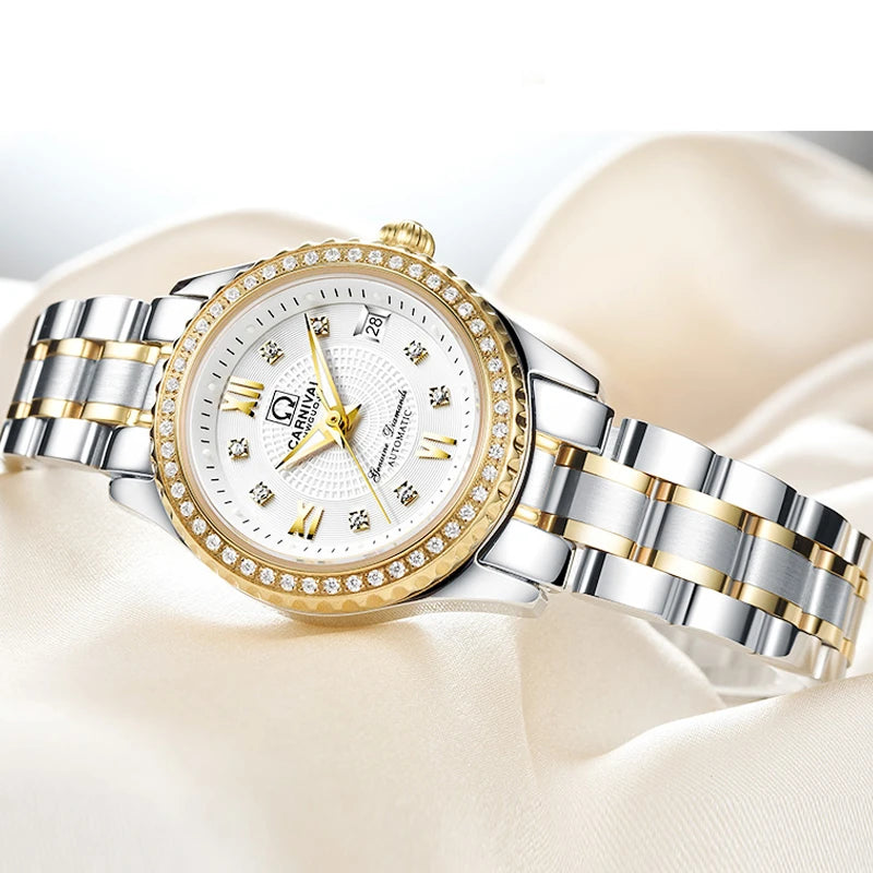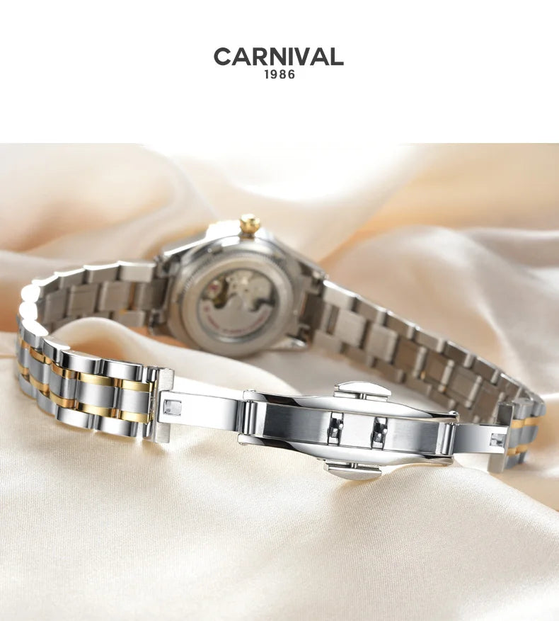 CARNIVAL Brand Luxury Wrist Watches for Women Ladies Waterproof Sapphire Automatic Mechanical Wristwatch Luminous Montre Femme