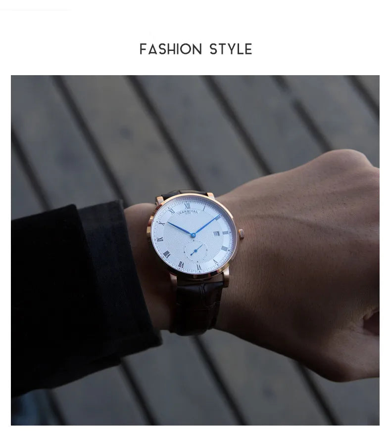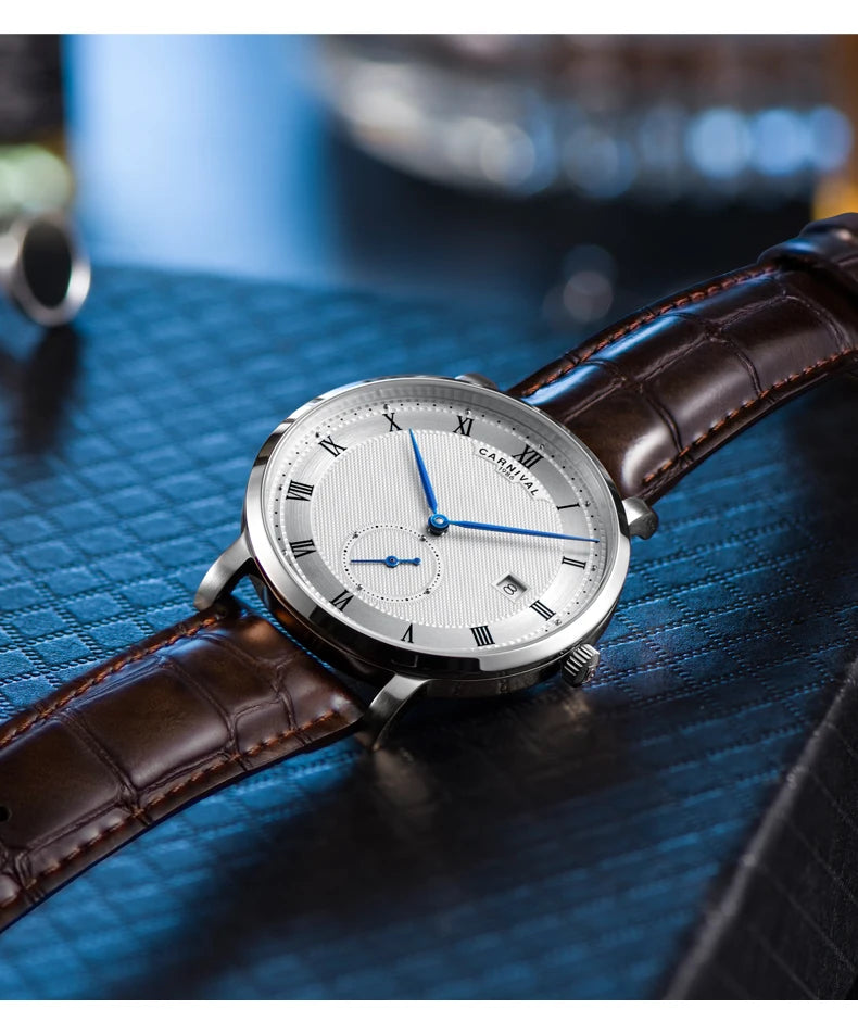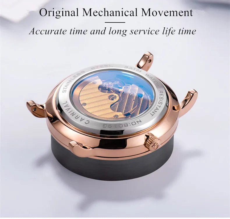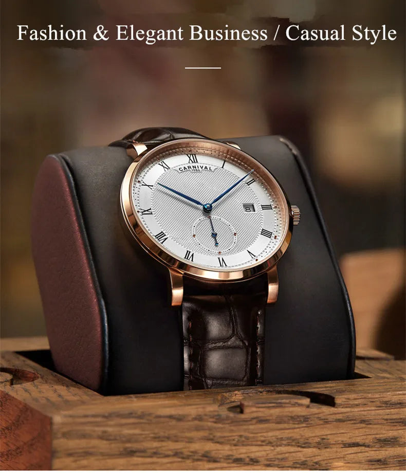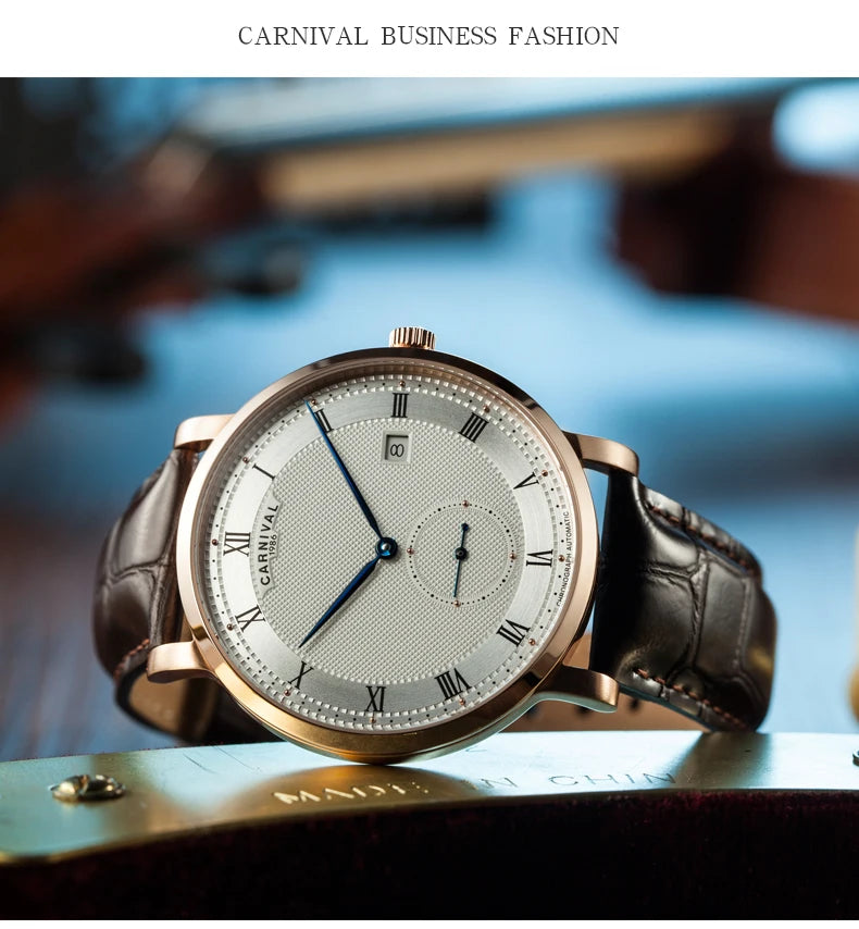 Carnival Brand Luxury Watches for Men Fashion Waterproof Rose Gold Silver Calendar Automatic Mechanical Wristwatch Reloj Hombre