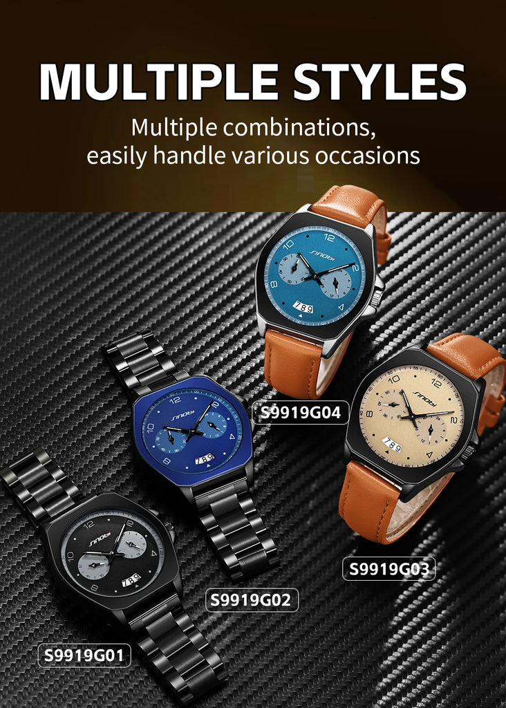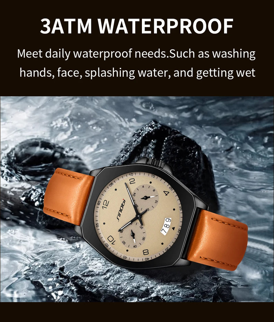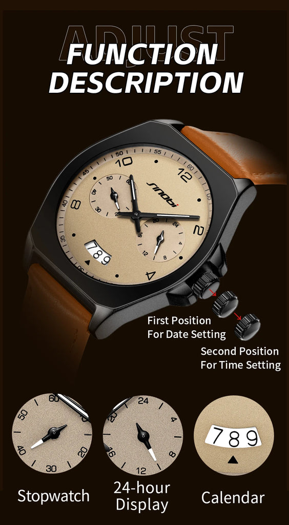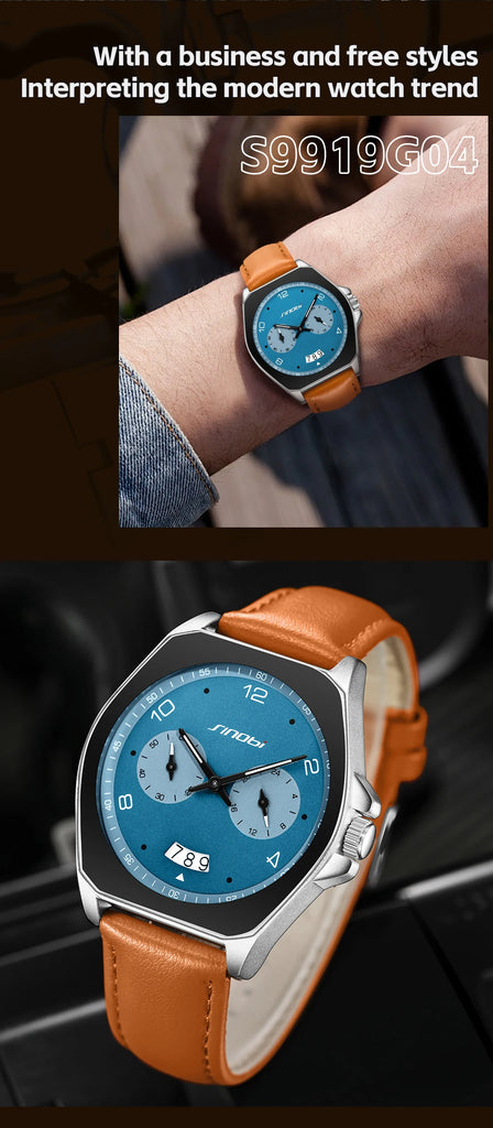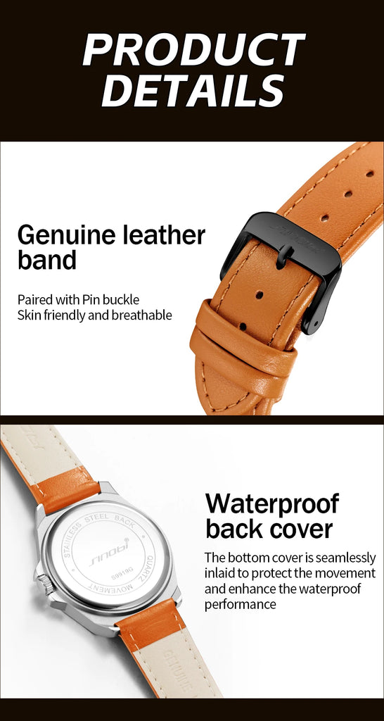 SINOBI Men’s Quartz Watch – Fashion Leather Strap, Waterproof, Top Brand Gift Wristwatch